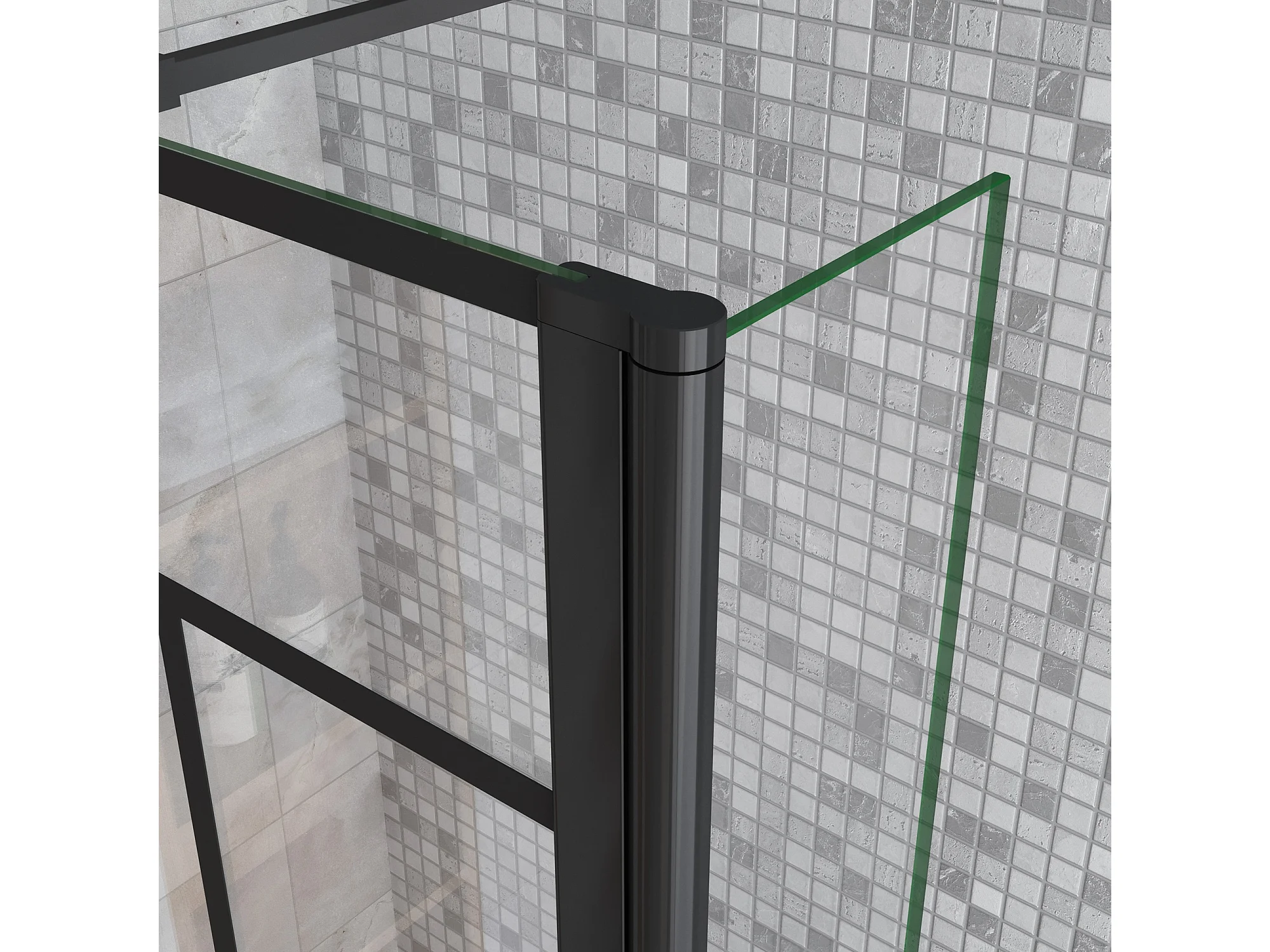 Douchewand-Inloopdouche 100cm draaibaar 30cm 8mm NANO EasyClean onregelmatig zwart rooster gezeefdrukt glas+73-120cm Stabilisatiestang inkortbaar