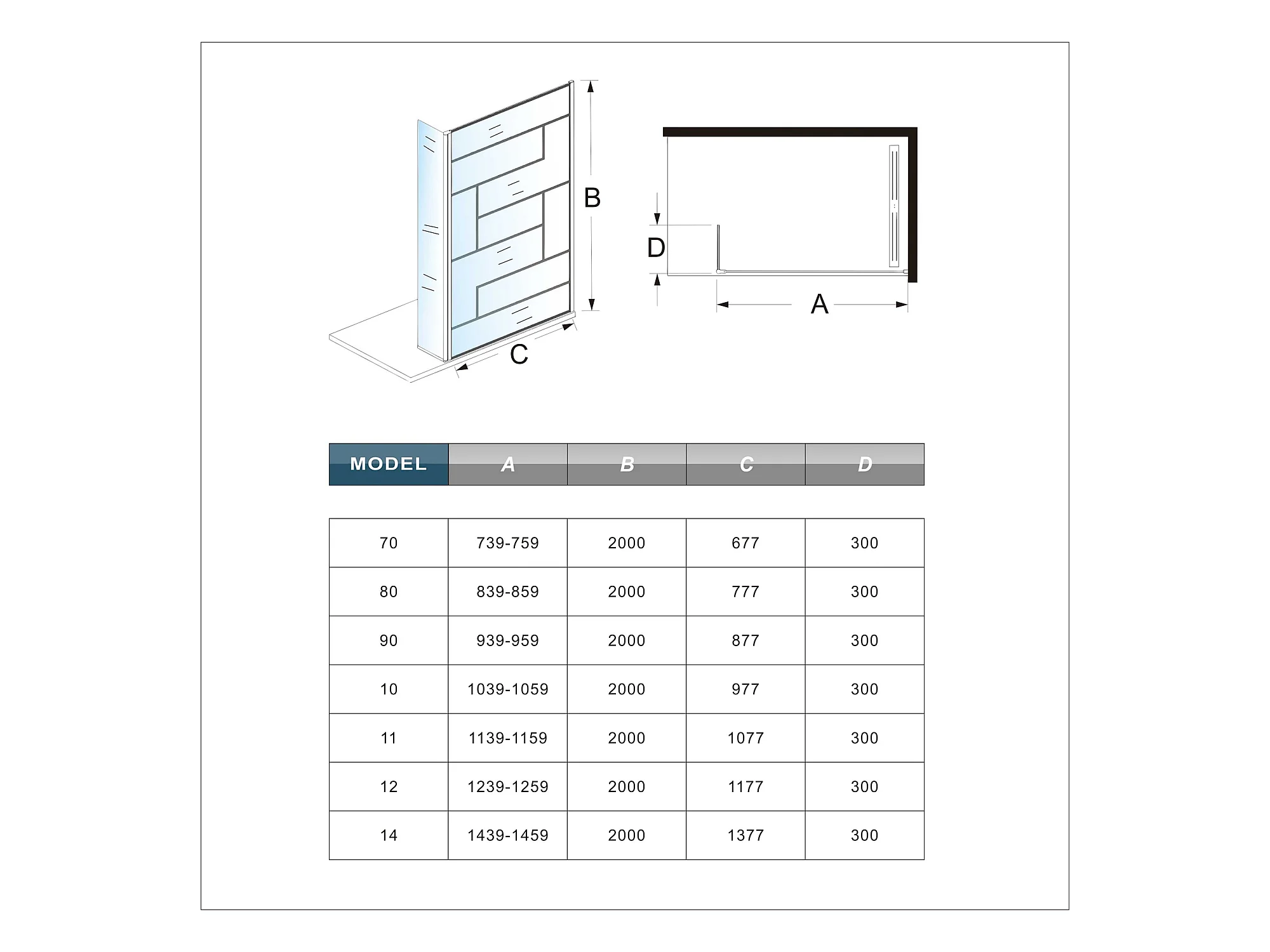 Douchewand-Inloopdouche 100cm draaibaar 30cm 8mm NANO EasyClean onregelmatig zwart rooster gezeefdrukt glas+90cm Stabilisatiestang kan worden gesneden