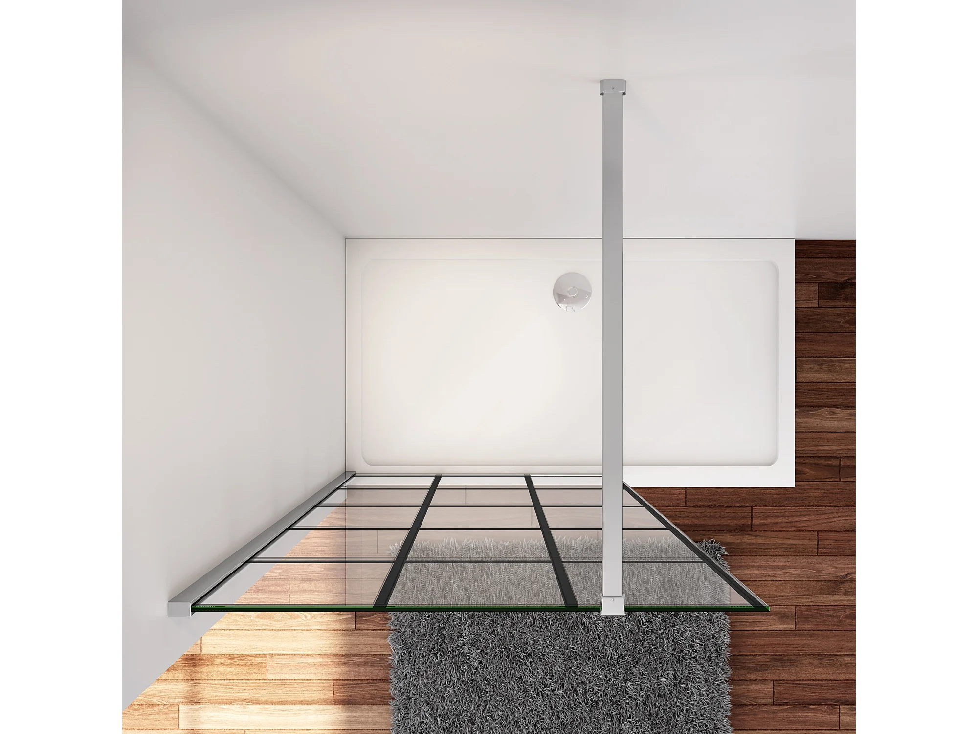 Douchewand-Inloopdouche 100x200cm met mat Zwart kader en raster 8mm NANO EasyClean veiligheidsglas N-Form 140cm Stabilisatiestang