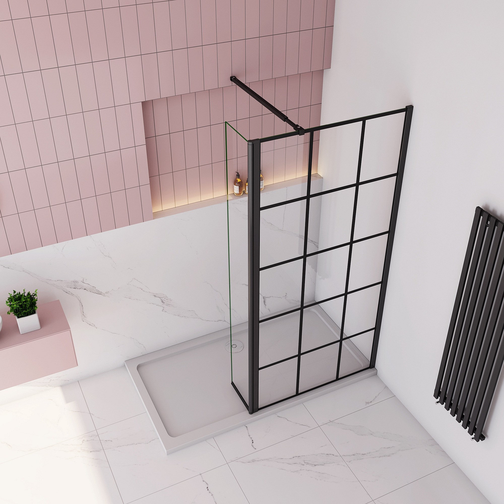Douchewand-Inloopdouche 120cm draaibaar 30cm 8mm NANO EasyClean onregelmatig zwart rooster gezeefdrukt glas+90cm Stabilisatiestang kan worden gesneden