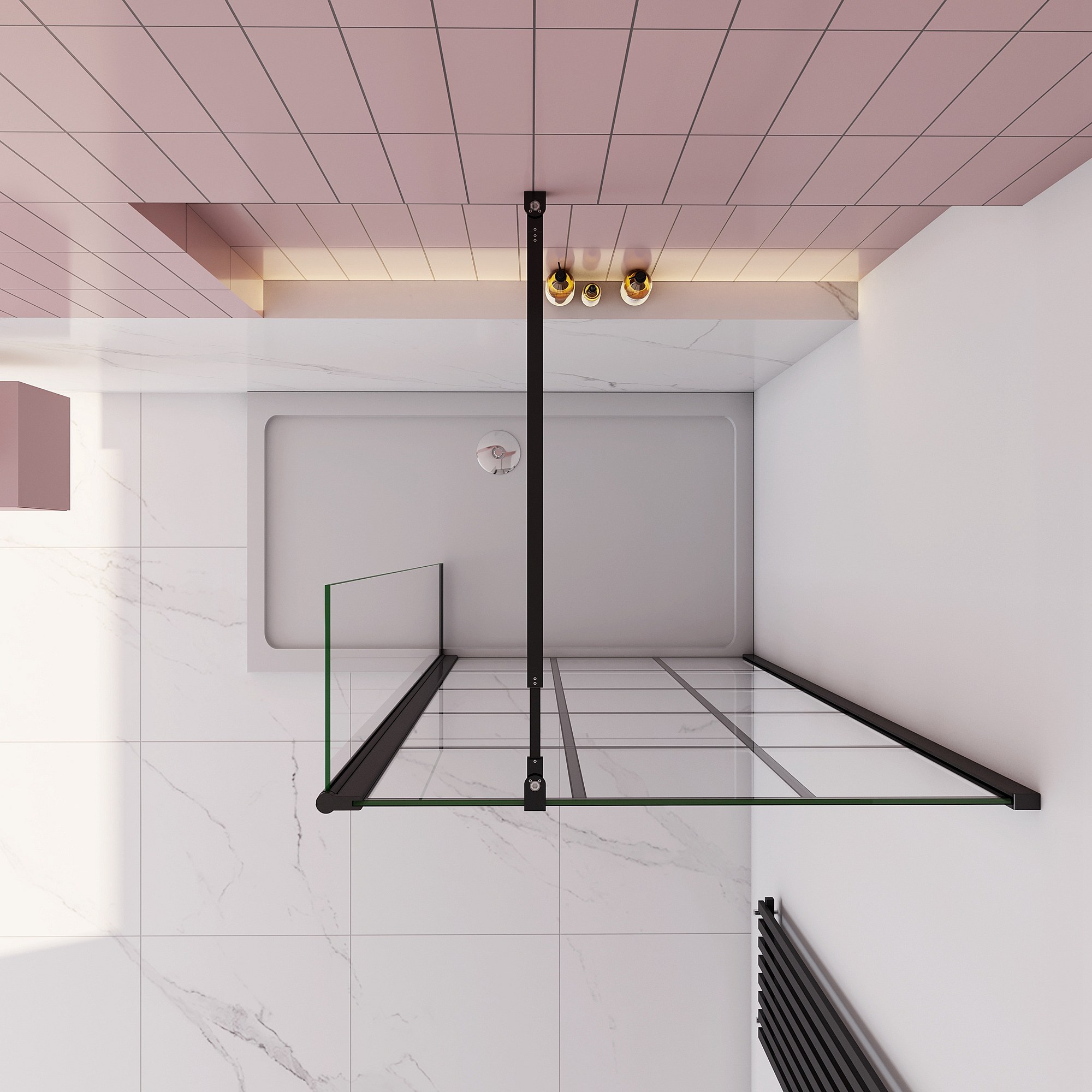 Douchewand-Inloopdouche 120cm draaibaar 30cm 8mm NANO EasyClean onregelmatig zwart rooster gezeefdruktglas+140cm Stabilisatiestang kan worden gesneden