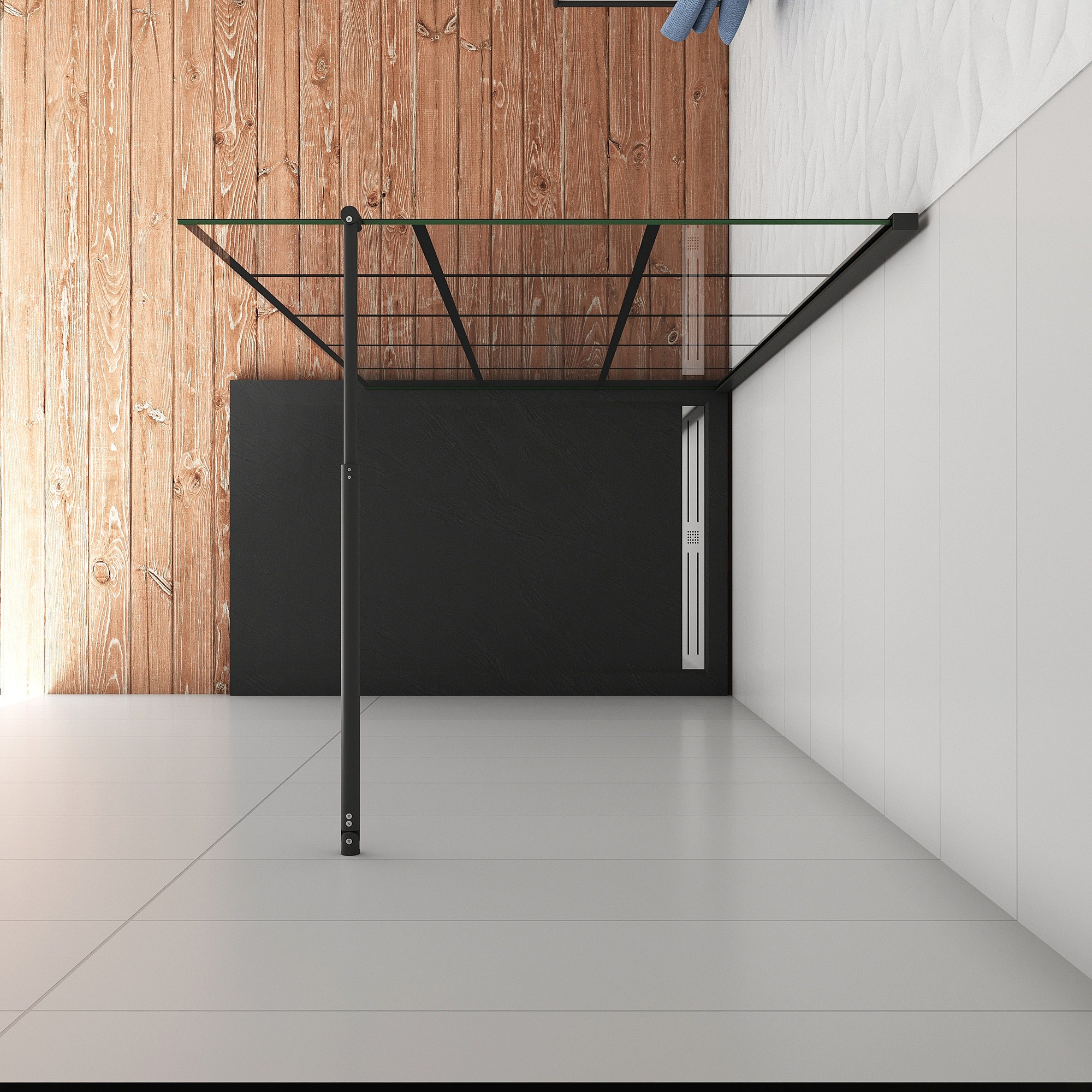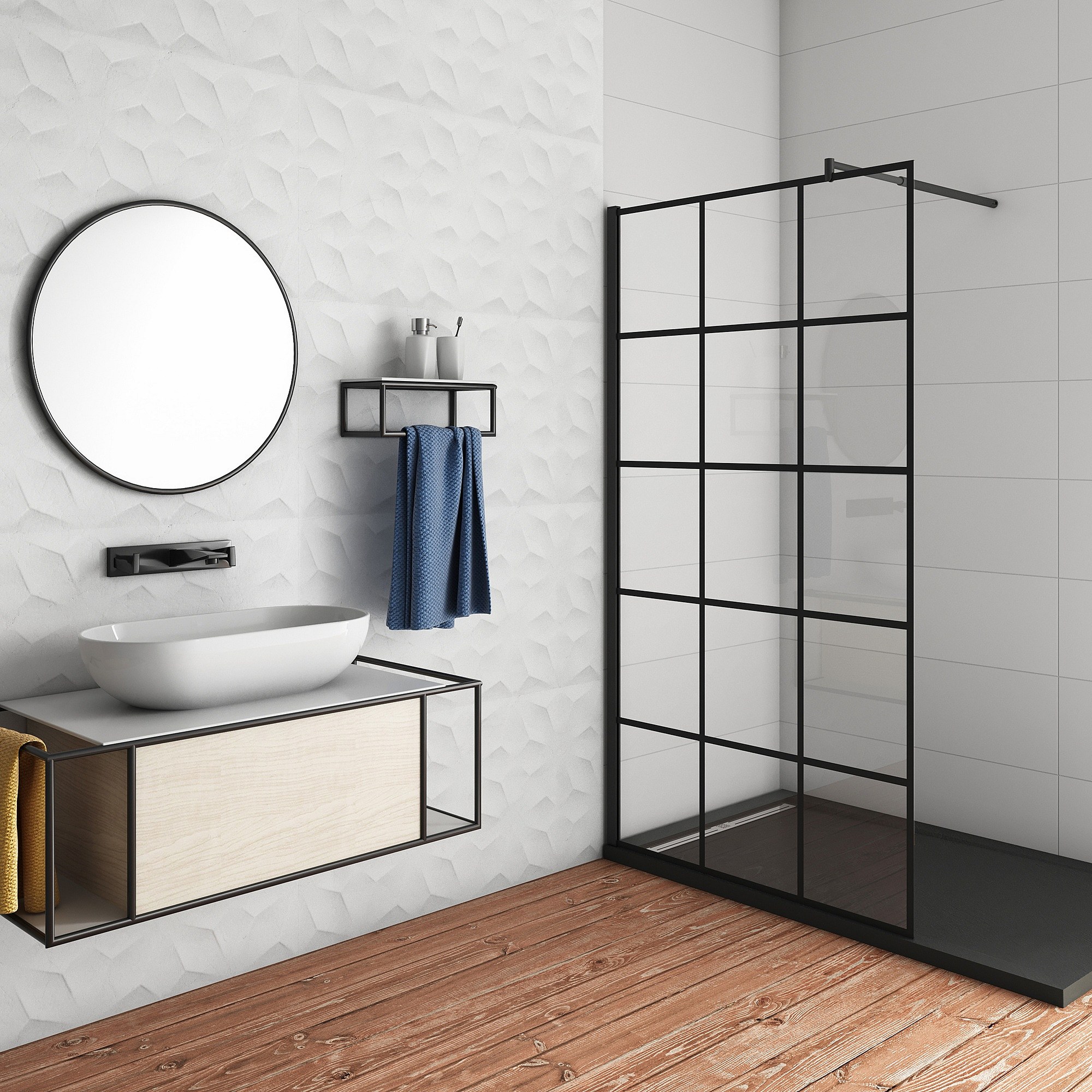 Douchewand-Inloopdouche 120x200cm met mat Zwart kader en raster 8mm NANO EasyClean veiligheidsglas mat zwart profiel Stabilisatiestang 70-120 cm