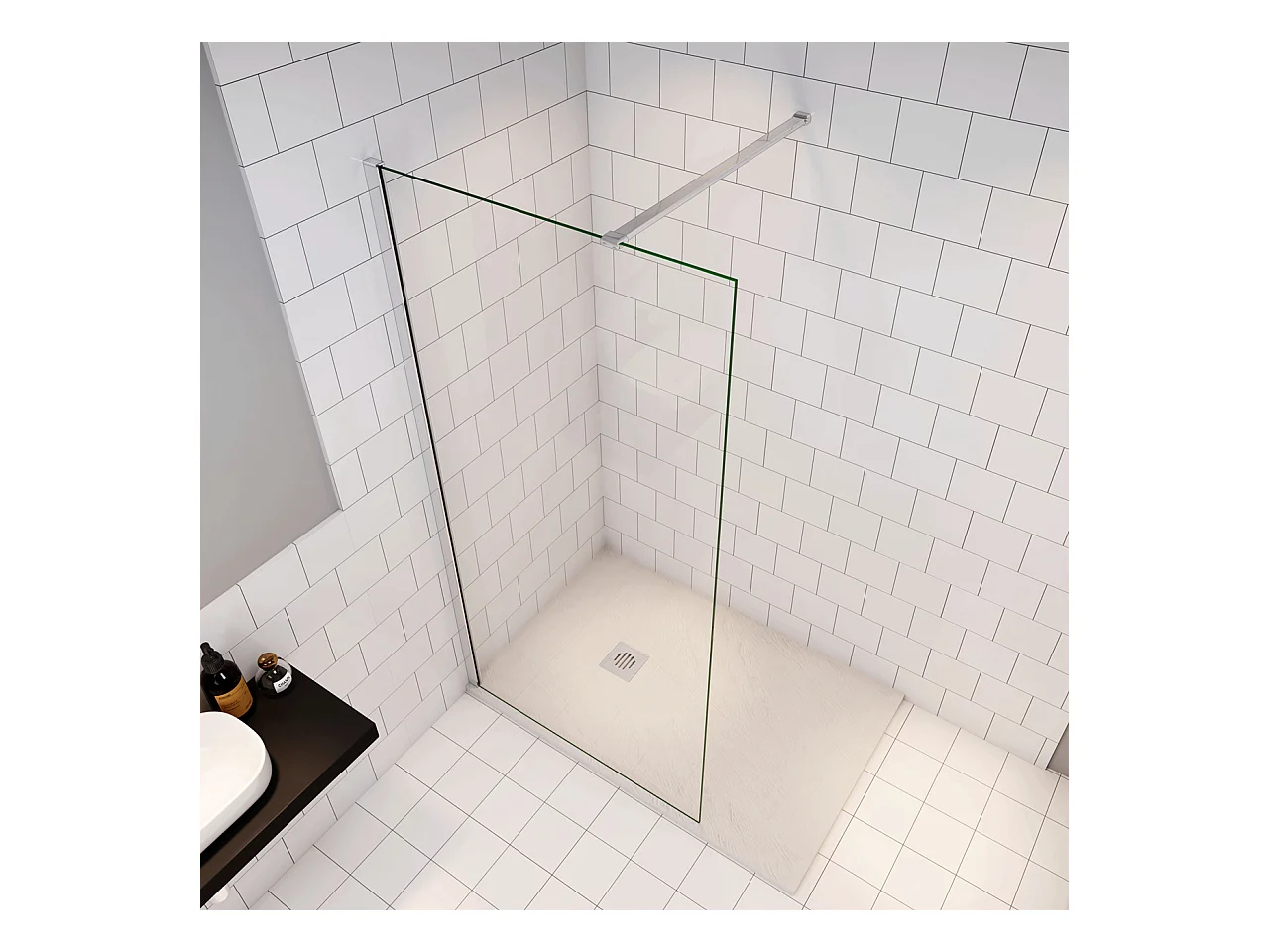 Douchewand Inloopdouche 66x195cm+N:90cm Stabilisatiestang,6mm nano veiligheidsglas,glanzend chroom profiel