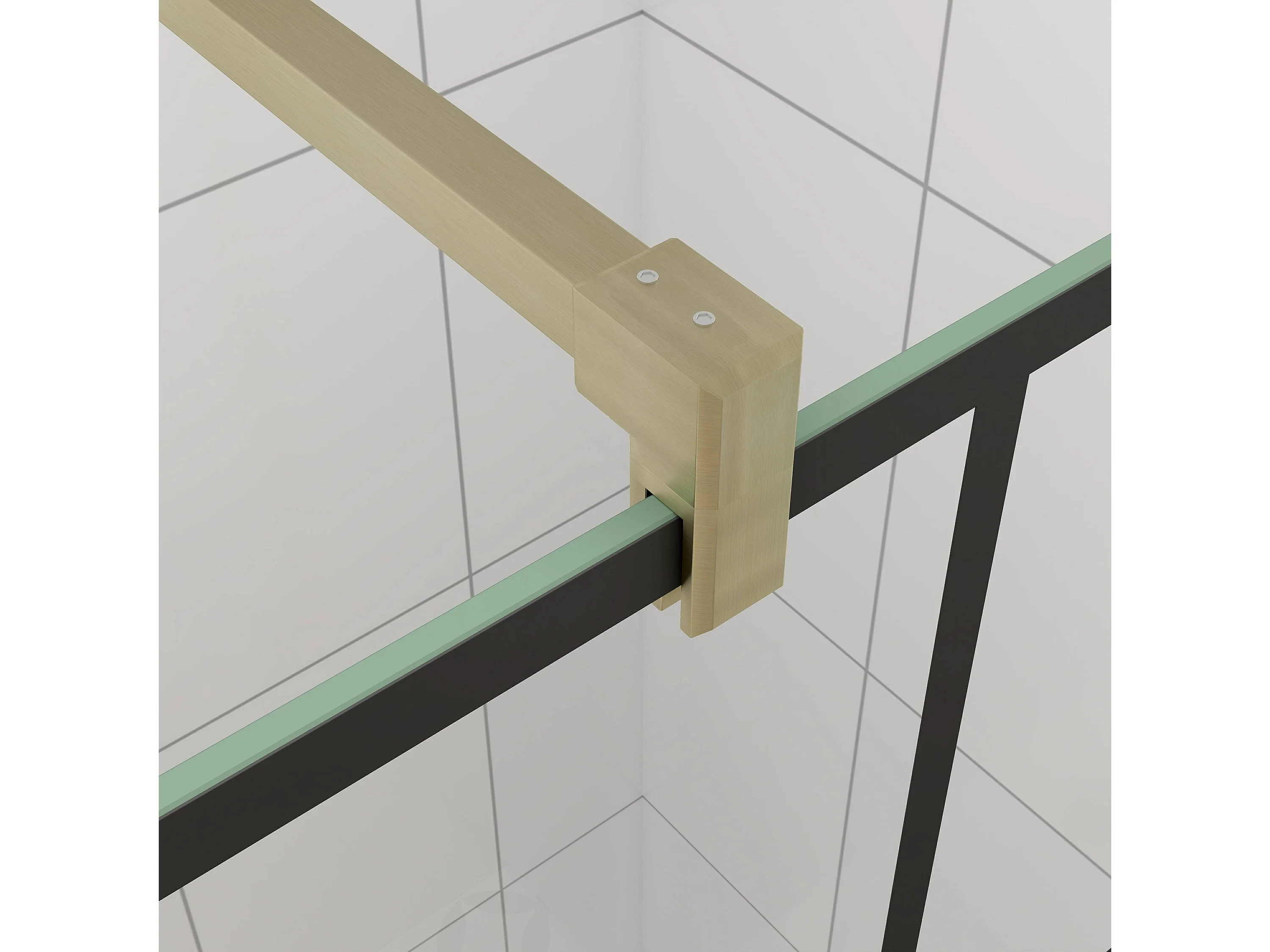 Douchewand-Inloopdouche 90x200cm met mat Zwart kader en raster 8mm NANO EasyClean veiligheidsglas gouden profiel F-Form 140cm Stabilisatiestang