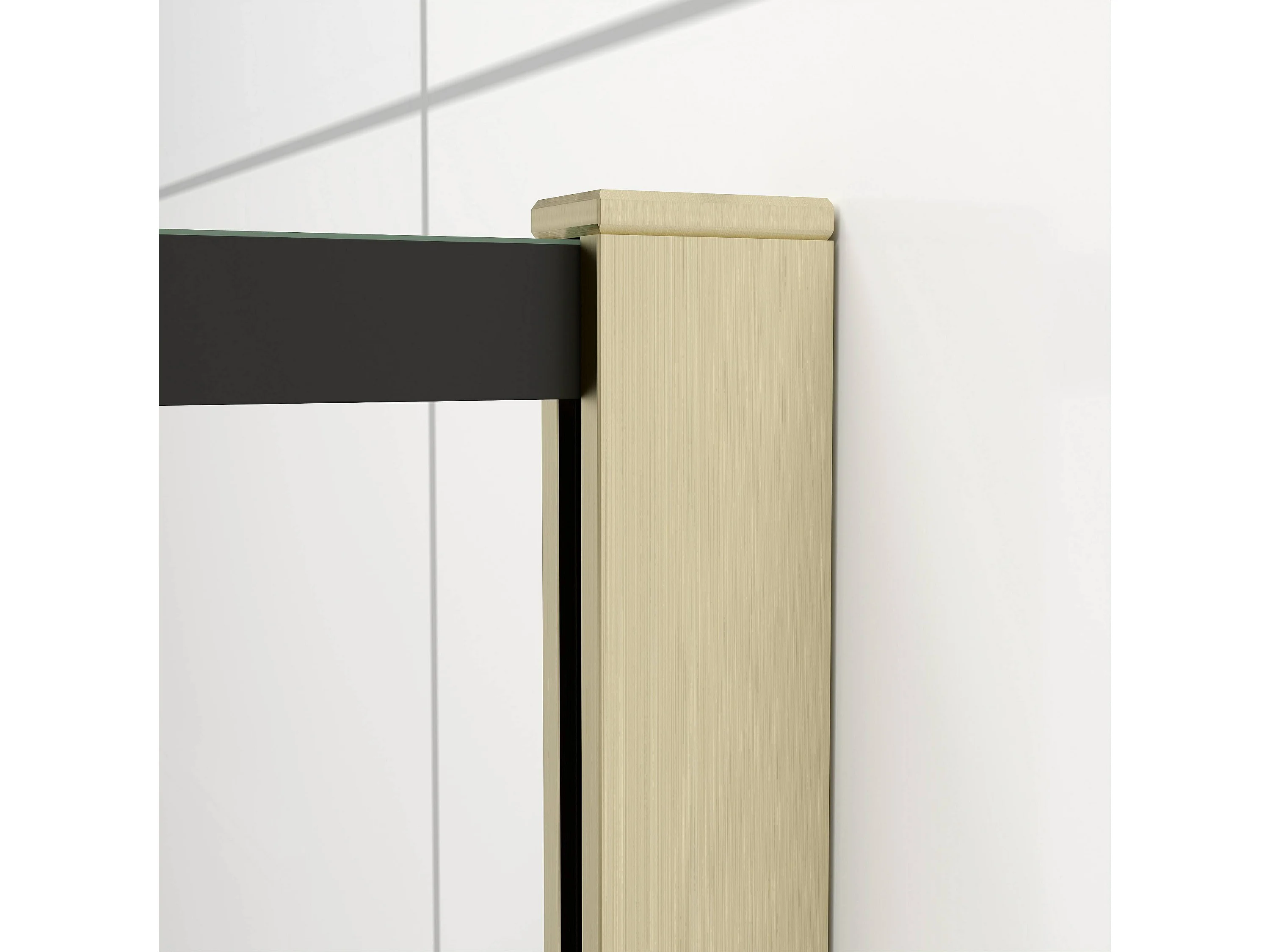 Douchewand-Inloopdouche 90x200cm met mat Zwart kader en raster 8mm NANO EasyClean veiligheidsglas gouden profiel Stabilisatiestang 50cm
