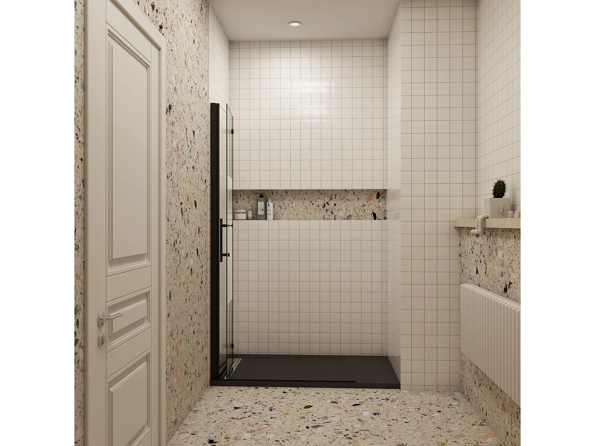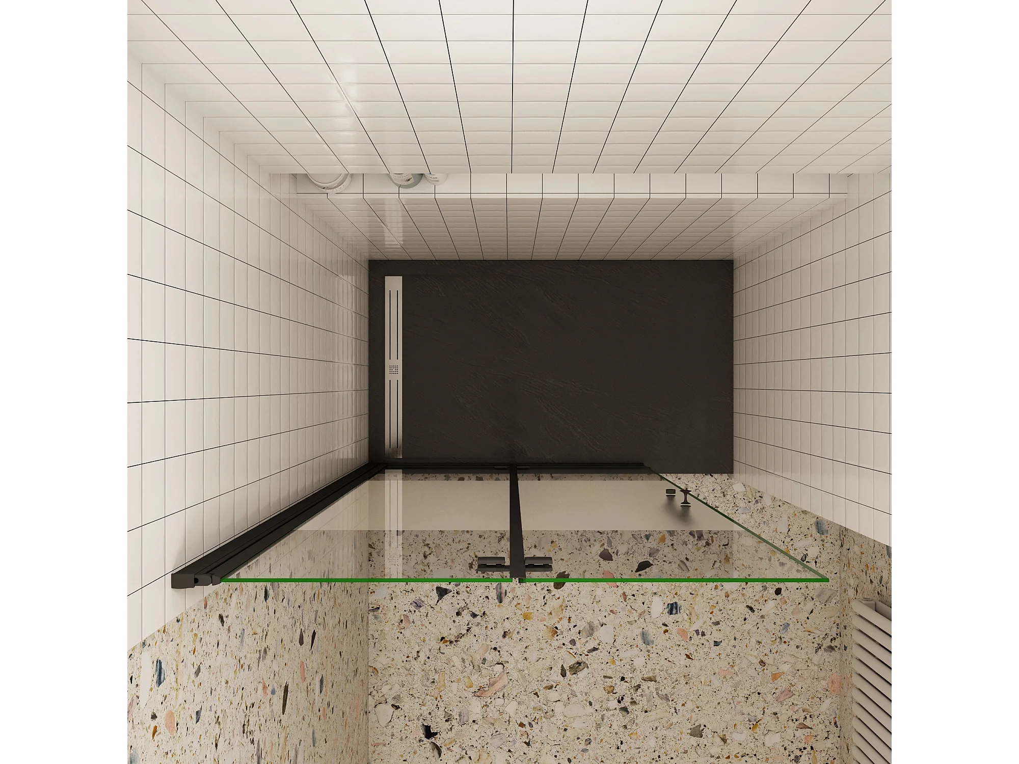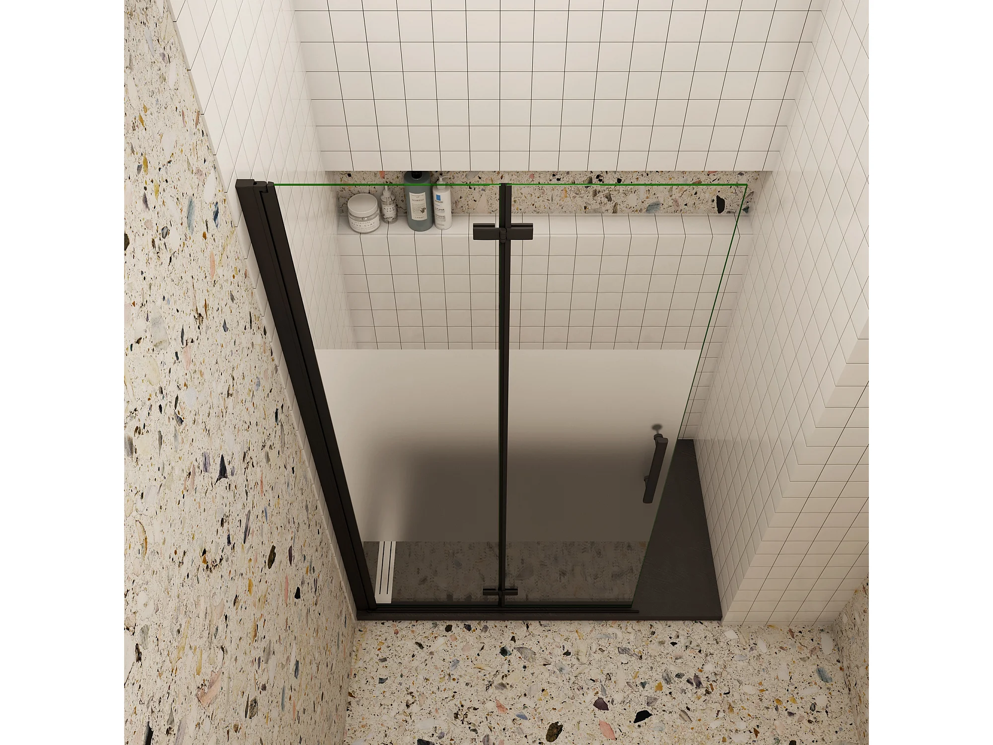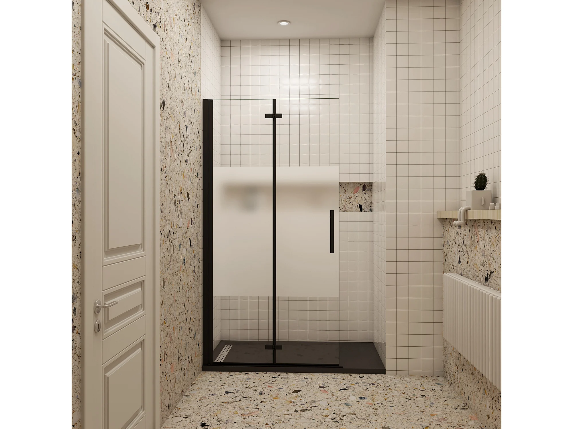 Douchewand-Inloopdouche vouwdeur 85x195cm met matte folie middelban 6mm NANO veiligheidsglas mat zwart profiel