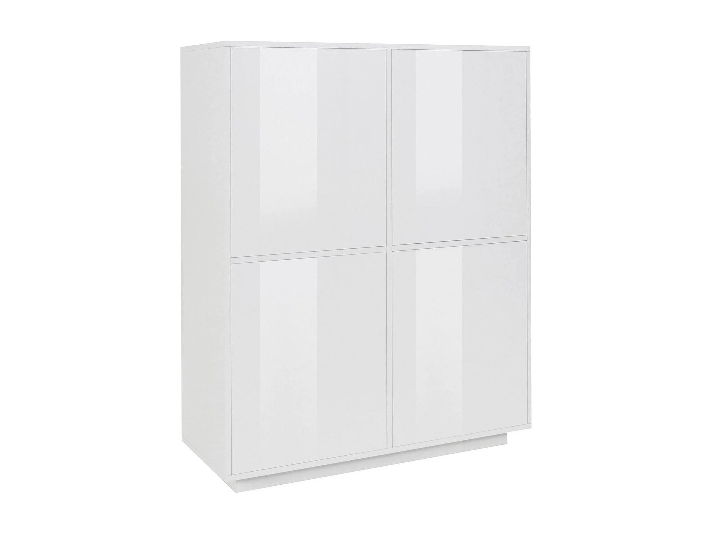 Dpaci dressoir, 4-deurs keukendressoir, Woonkamerbuffet, 100% Made in Italy, 100x41h126 cm, Glanzend wit
