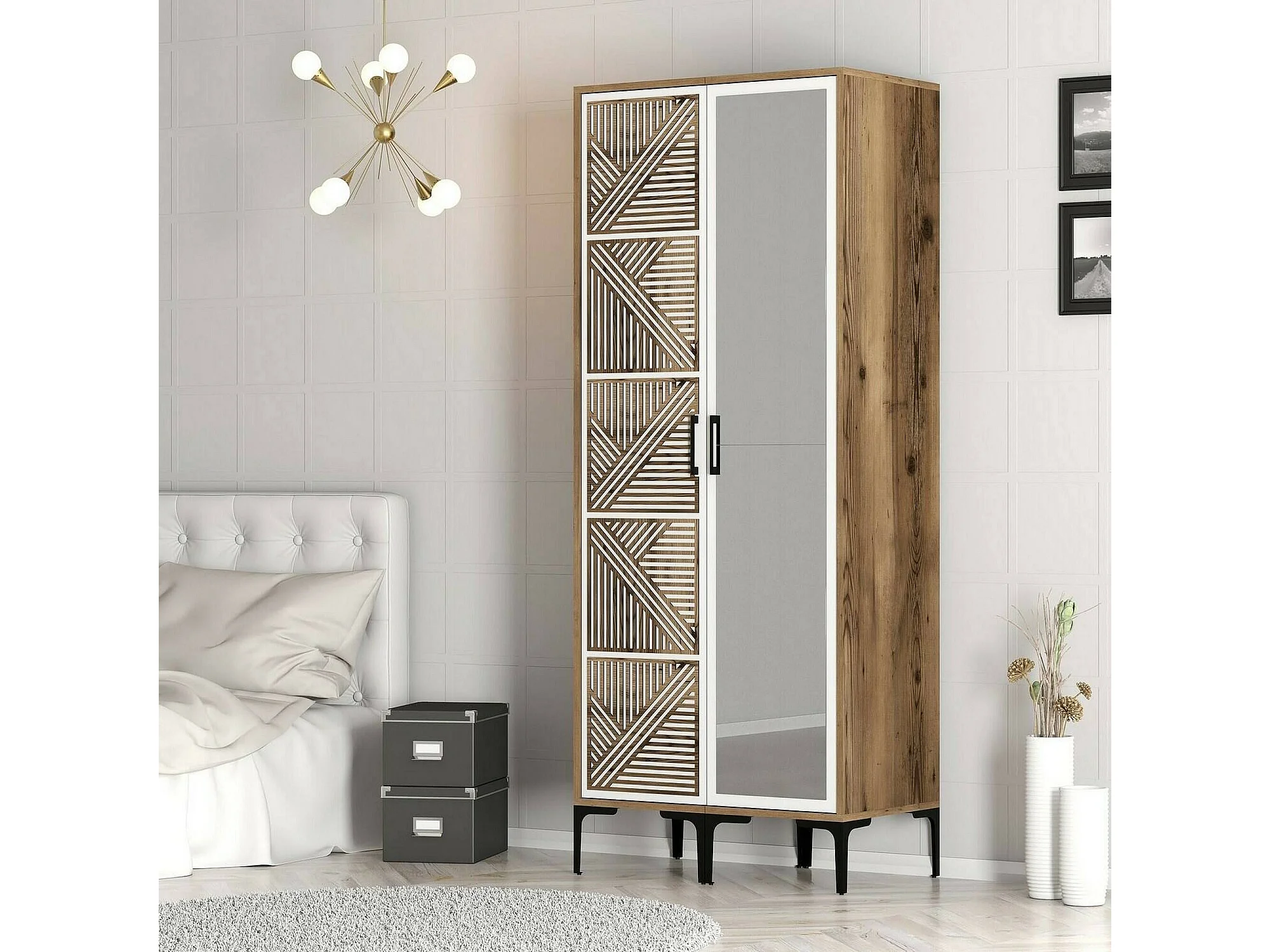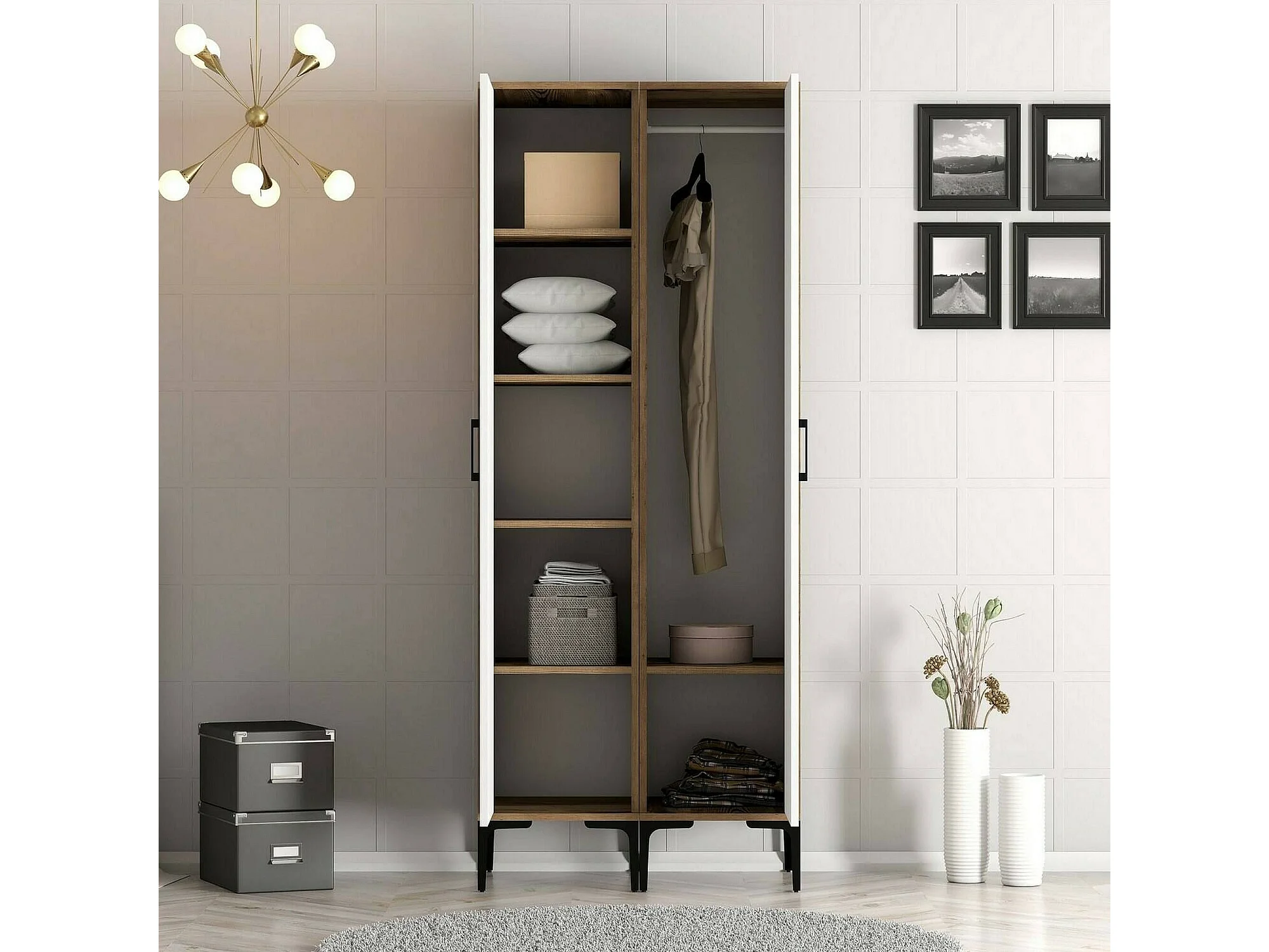 Dpagliuc 2-deurskast, Slaapkamermeubel, Inloopkast, Kledingkast, 80x201h48 cm, Walnoot en Wit