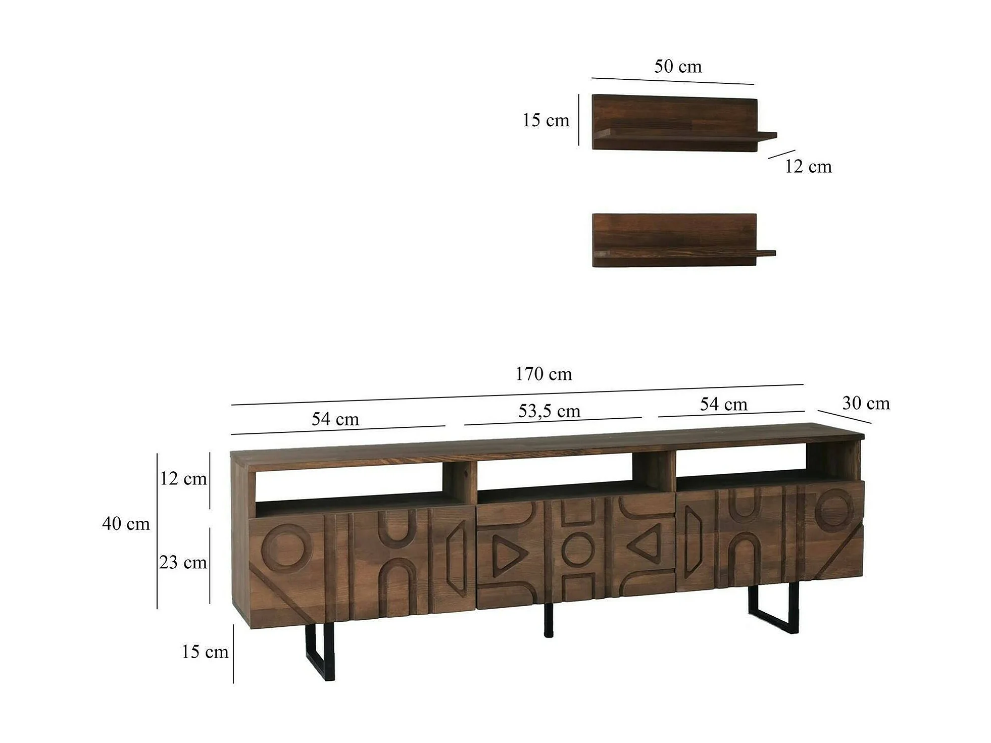 Dpatrici tv-meubel, bijzit, lage tv-meubel, wandstandaard, 170x30h40 cm, walnoot