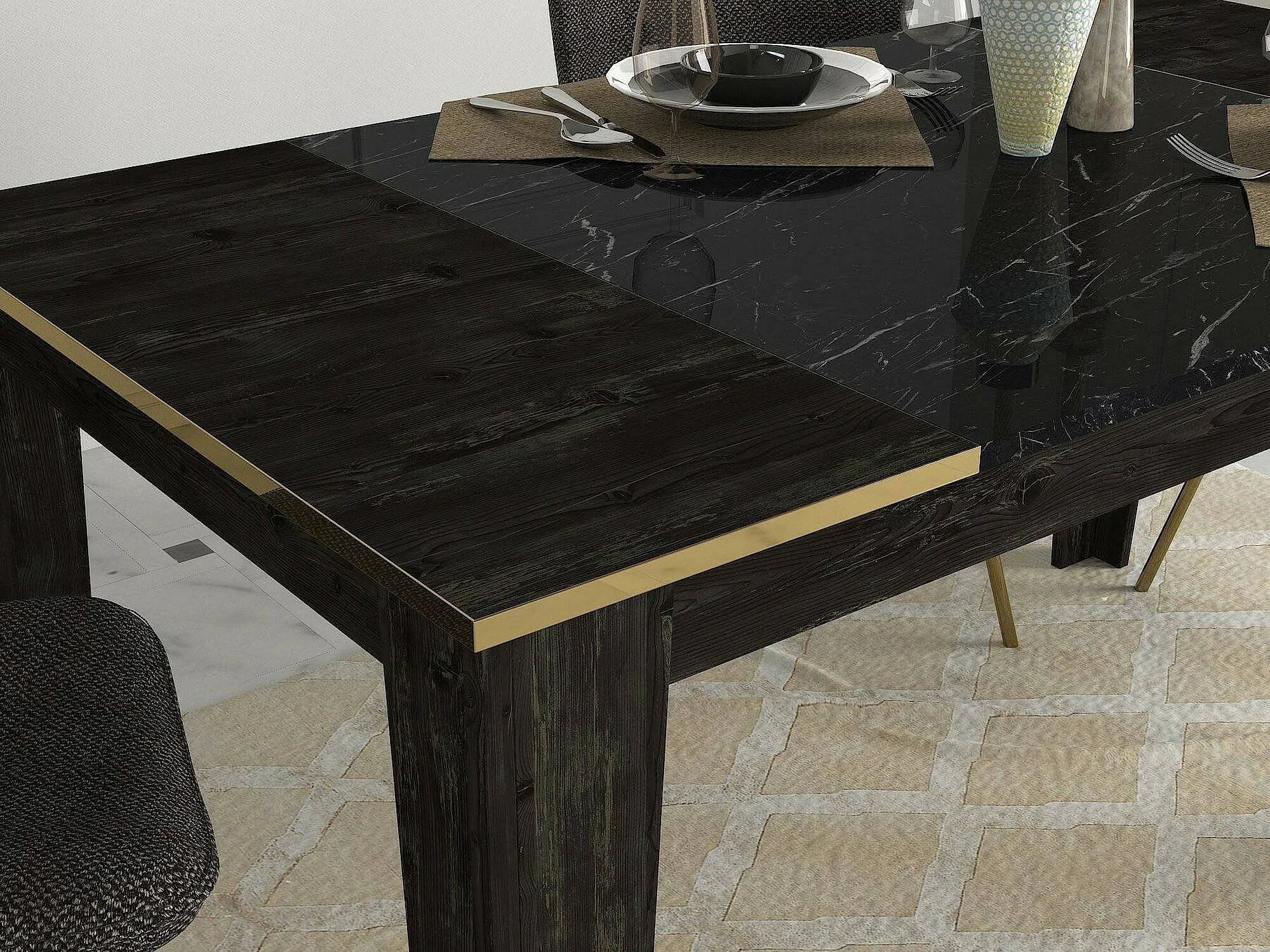 Dpel vaste tafel, keukenplank, eetkamerconsole, vaste rechthoekige plank, 145x85h76 cm, zwart en goud