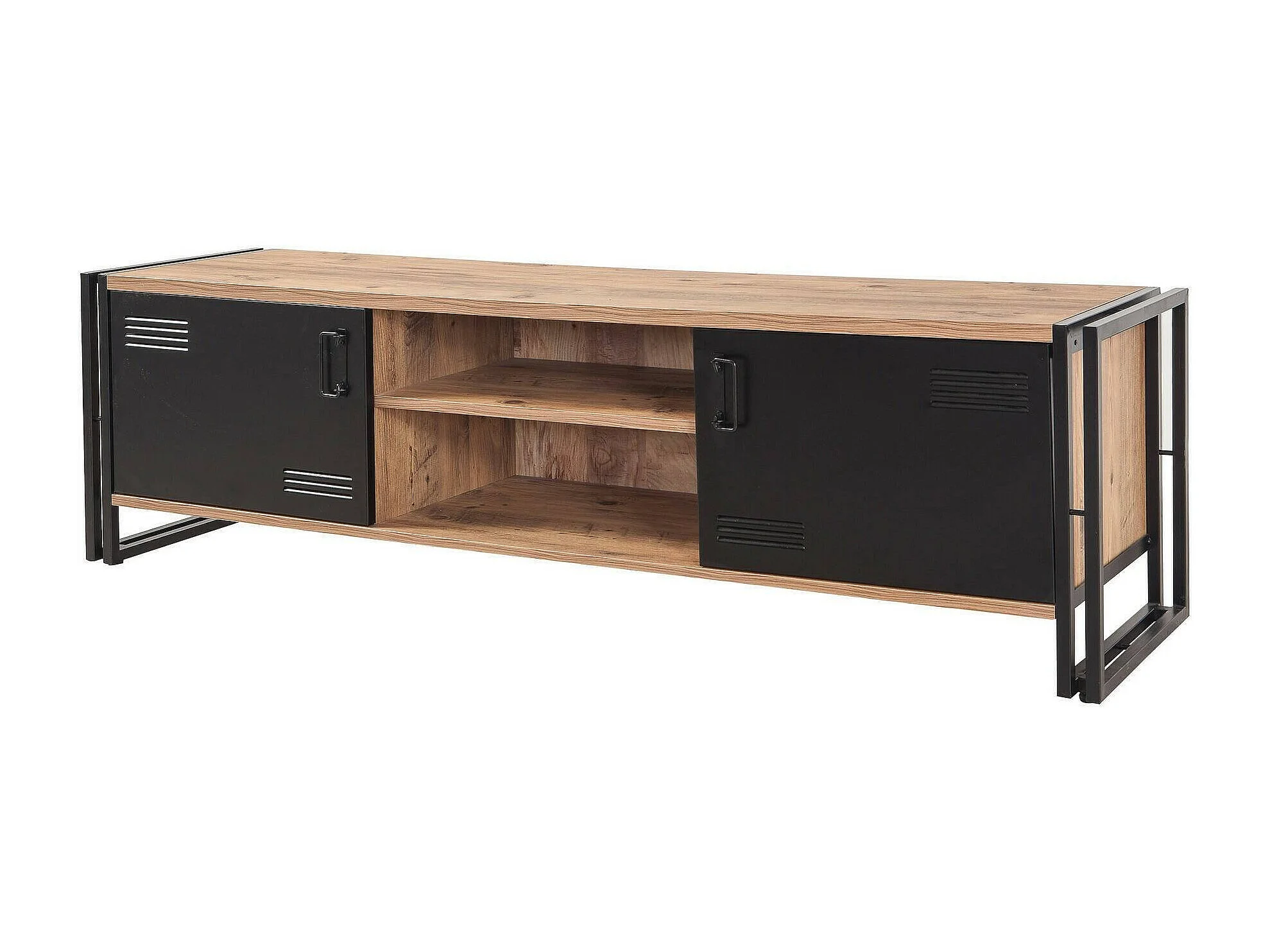 Dperott tv-meubel,Woonkamer dressoir, Lage tv garderobe, Inbouw wandvoet, 180x45h50 cm, Eiken en Zwart