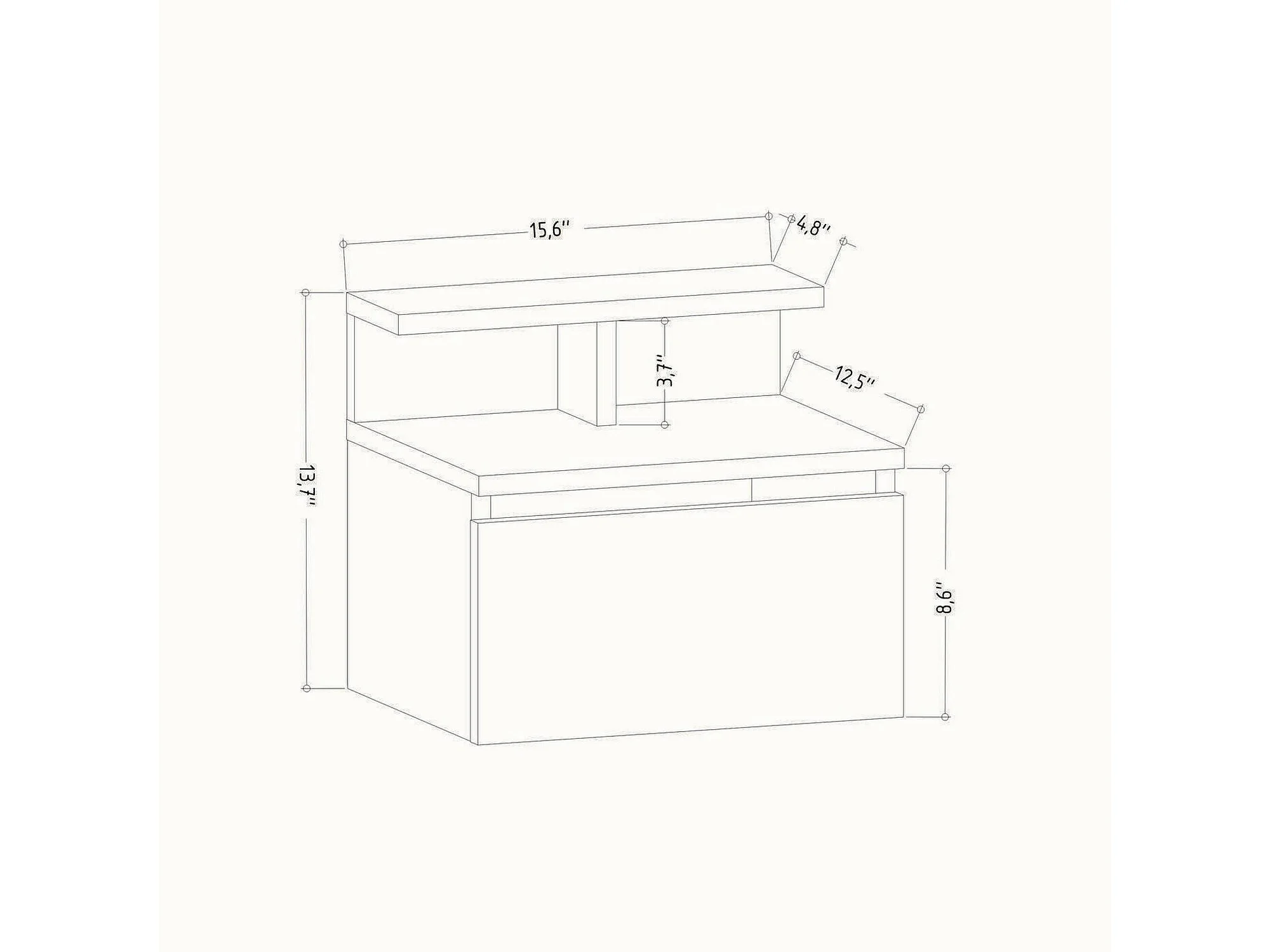 Drovell nachtkastje, Lage ladekast, Nachtkastje, Bedplank, 43x40 h60 cm, Zwart en Walnoot