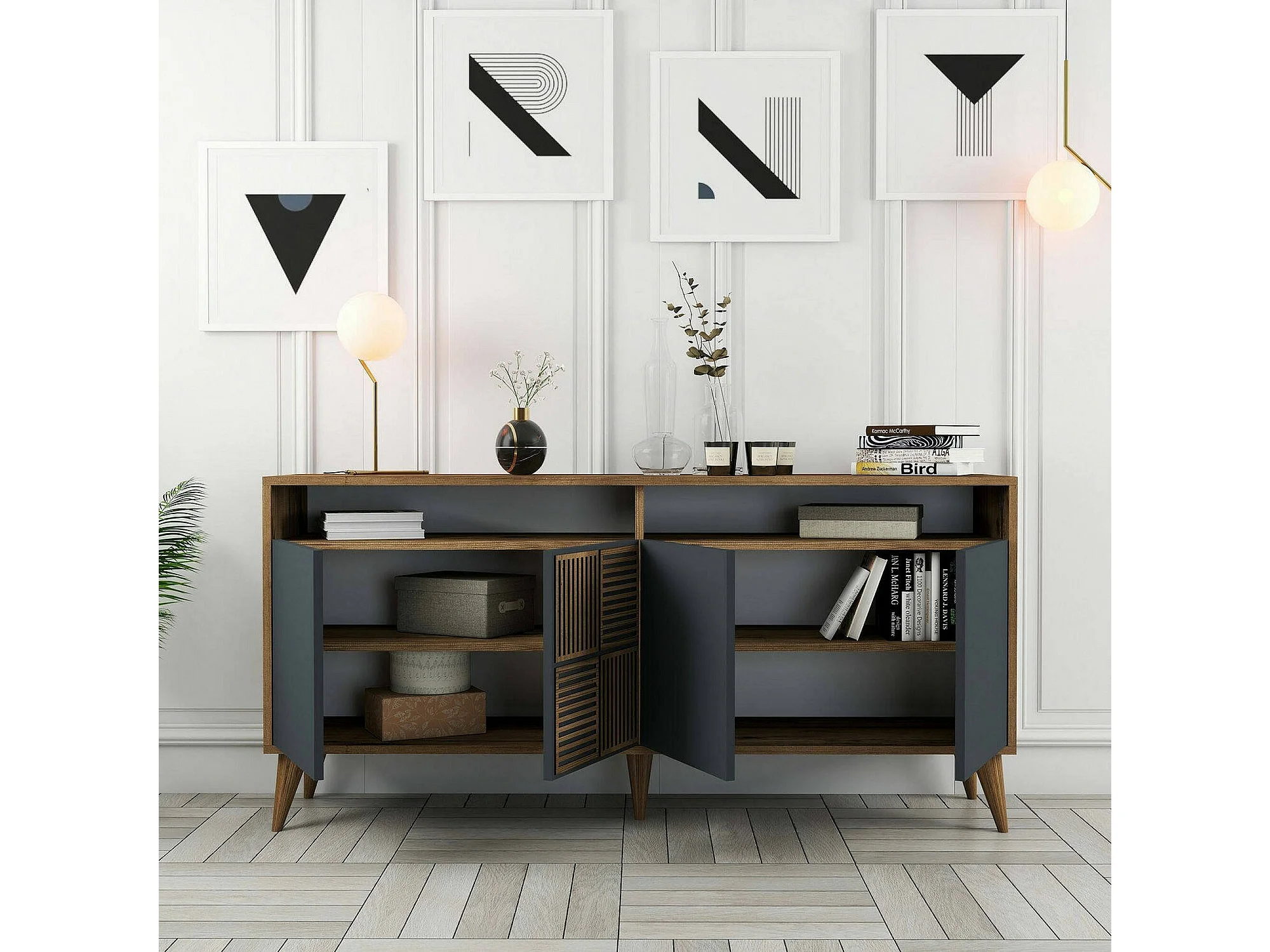 Dpiccion dressoir, BuffetWoonkamer, Woonkamer, Keukenkast, 160x35h79 cm, Walnoot en Antraciet