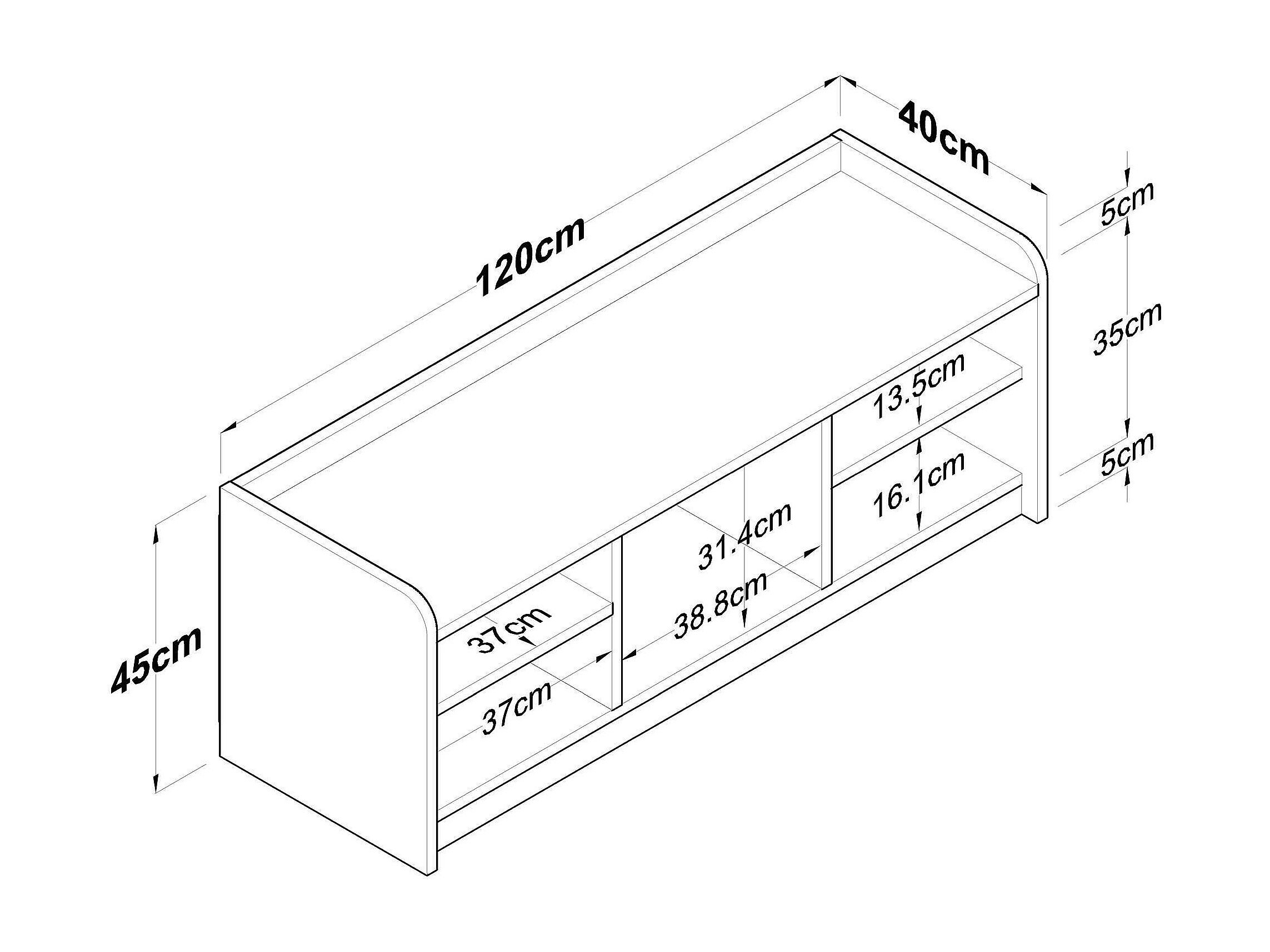 SCHOENENREK - Schoenenrek, multifunctionele entreekast, schoenenkast, 120x40 h45 cm, wit en walnoot. STRUCTUUR EN GEBRUIK - Modern en ruimtebesparend schoenenrek, ideaal voor het opbergen van elk type schoenen - Multifunctioneel, elegant en functioneel meubelstuk, perfect voor plaatsing in de entree, gang, wasruimte, badkamer, kast, garage, slaapkamer , balkon, terras of entree - Multifunctionele kast, ook perfect voor het opbergen van voorwerpen en gereedschap - Praktisch en netjes schoenenrek, een comfortabel toevluchtsoord voor uw schoenen, ontworpen om de orde en elegantie in uw entree te behouden. KWALITEIT EN DESIGN - Meubelartikel met een modern en elegant design, perfect voor het inrichten van een eigentijdse en lichte omgeving - Ideaal voor wie op zoek is naar functionaliteit en ruimtebesparende oplossingen, dit product is perfect voor huizen en appartementen van elke grootte - Twee jaar garantie vanaf de datum van aankoop. TECHNISCHE EIGENSCHAPPEN - Veelzijdig meubelaccessoire, ontworpen voor eenvoudige integratie met ander meubilair - Stevige verpakking, ontworpen voor e-commerce - Materiaal: 18 mm melaminespaanplaat - Extra info: Talrijke planken - Extra opbergruimte - Mdf-membraandeuren - Product gedemonteerd geleverd - Planken niet verstelbaar. AFMETINGEN IN CM - Schoenenrek: Lengte: 120 Breedte: 40 Hoogte: 45 - Extra afmetingen: Tussenplankbreedte: 38,3 cm