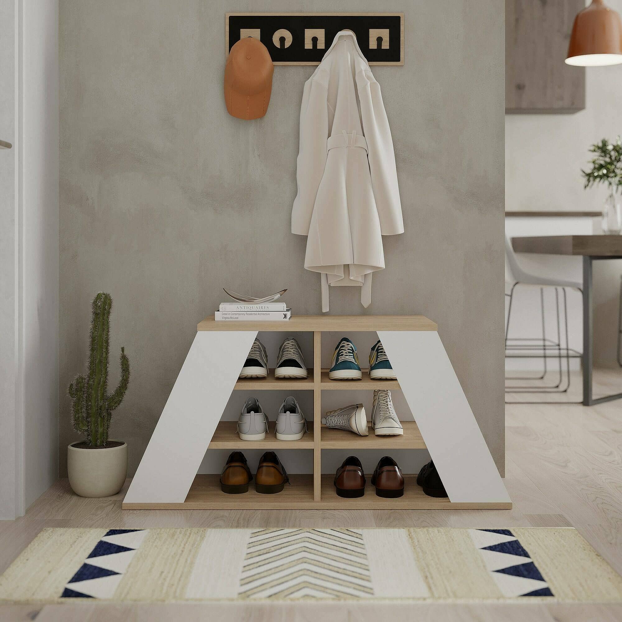 Dpiovanell schoenenrek, Schoenenkast, Multifunctionele entreekast, Schoenenkast, 106x38 h50 cm, Eiken en Wit