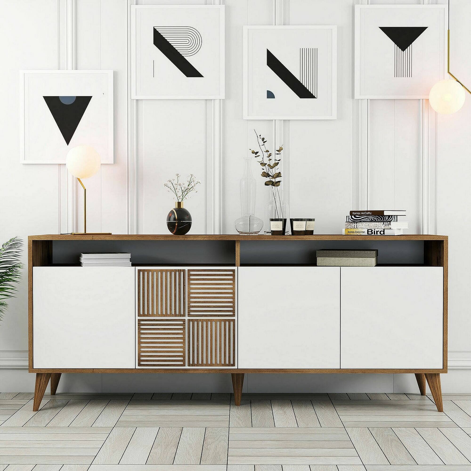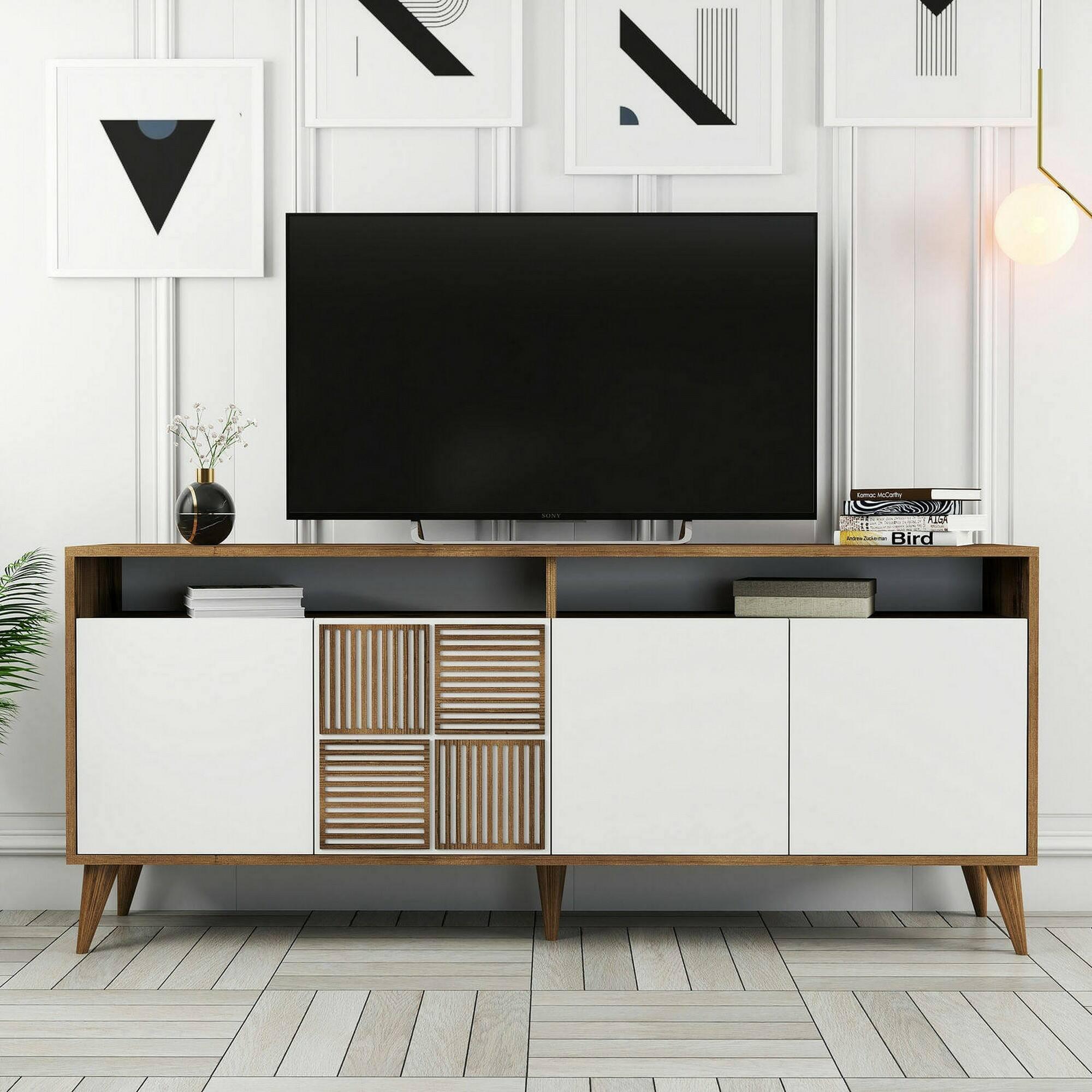 Dp-tv-standaardIccion, woonkamermeubel, lage tv-meubel, wandstandaard, 160x35 h79 cm, walnoot en wit