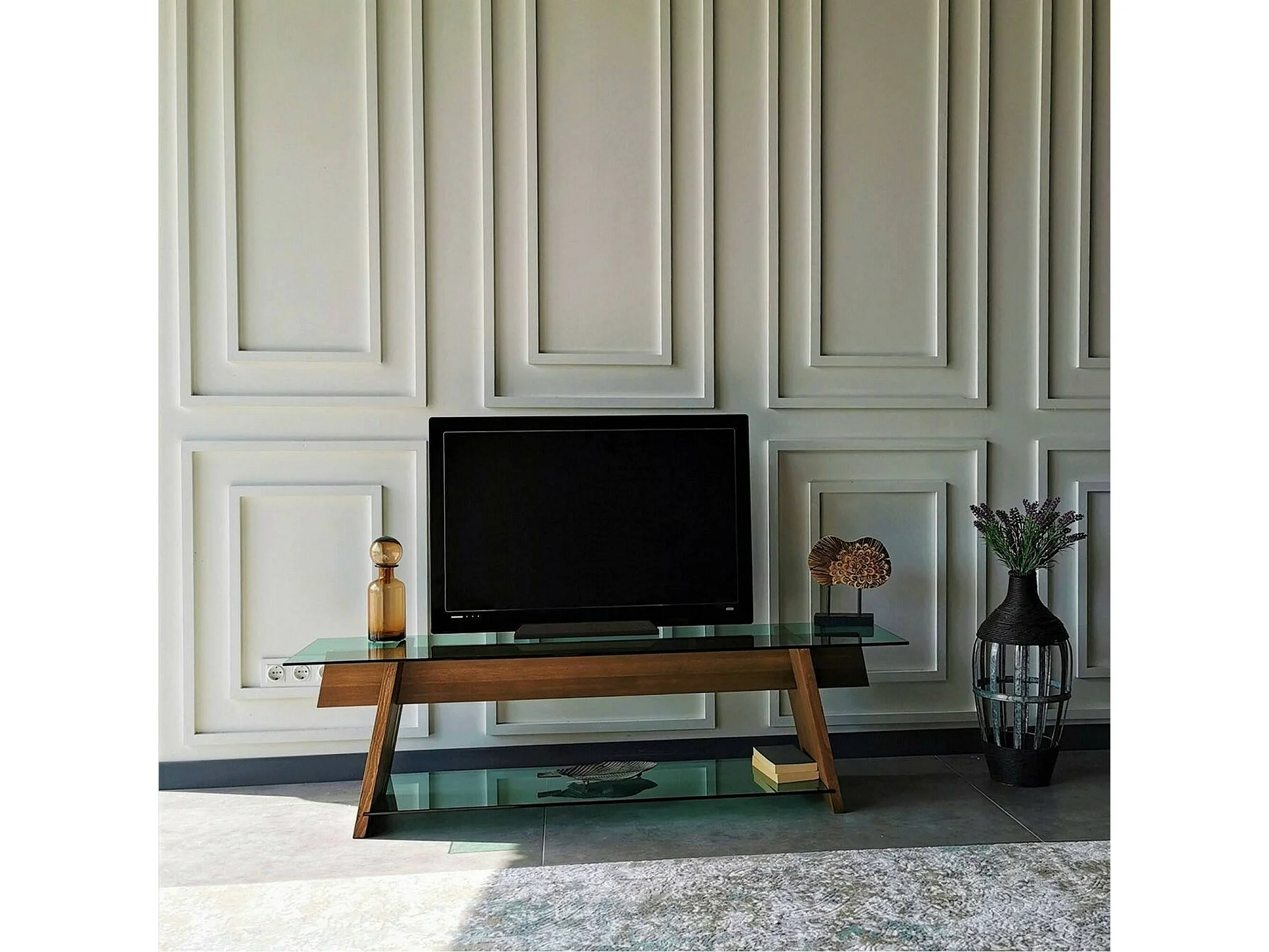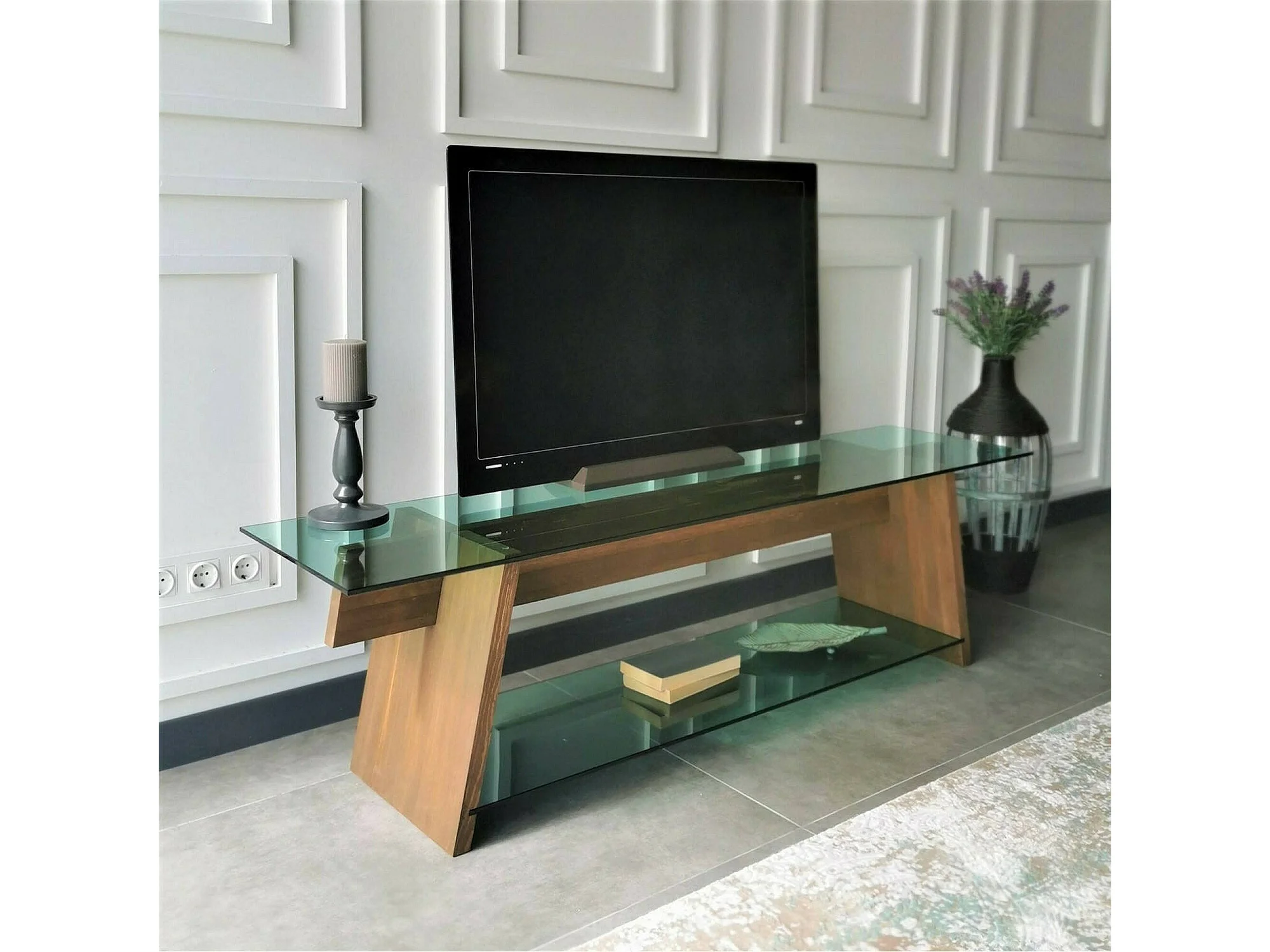 Dpotenz tv-meubel, woonkamermeubel, lage tv-meubel, wandstandaard, 158x40h45 cm, walnoot en groen