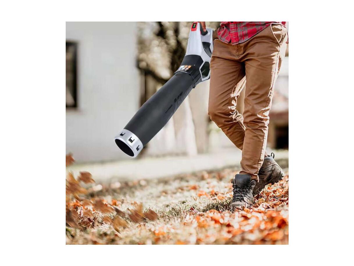 Ontdek de prestaties van de draadloze 40V Voltkore bladblazer: uitgerust met een duurzame en krachtige borstelloze motor, biedt hij een blaassnelheid tot 216 km/u en een luchtstroom van 780 m³/u. De TURBO-functie maakt het mogelijk om de kracht onmiddellijk te verhogen om zelfs de meest hardnekkige bladeren te verwijderen.