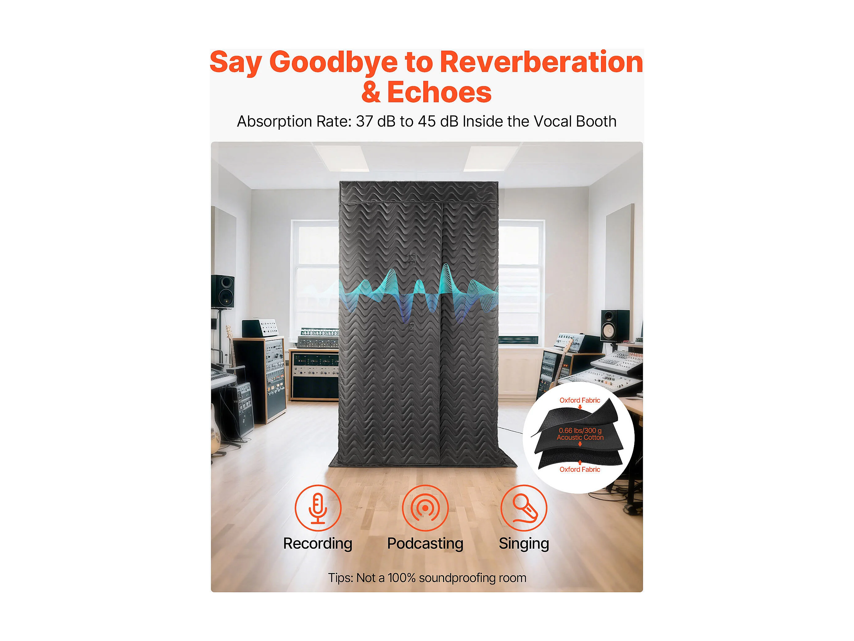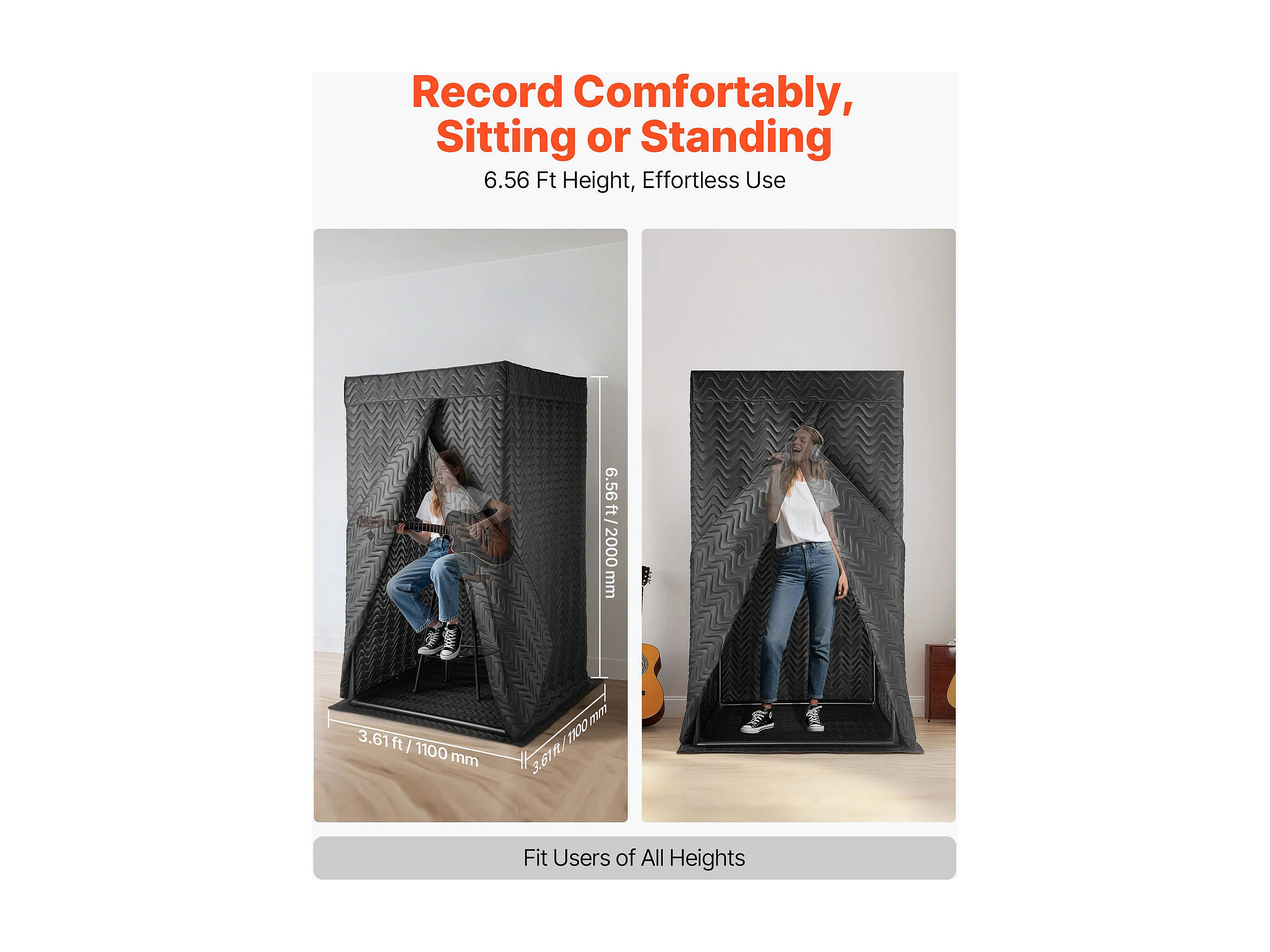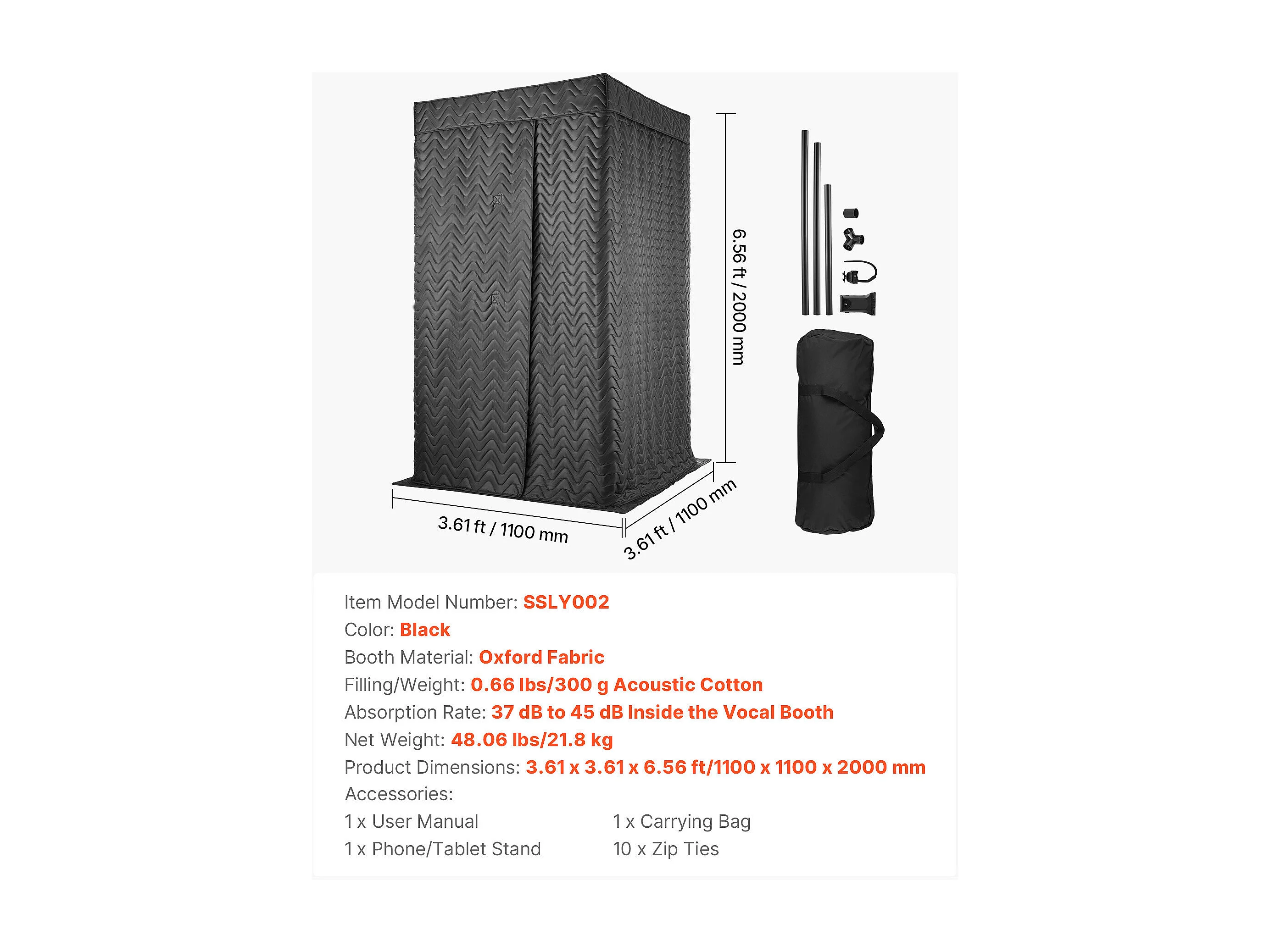 Draagbare Spraakcabine SucceBuy, 110 x 110 x 200 cm, Opnamestudio met Tas, Mobiele Standaard, Geluidsdichte Opnamecabine