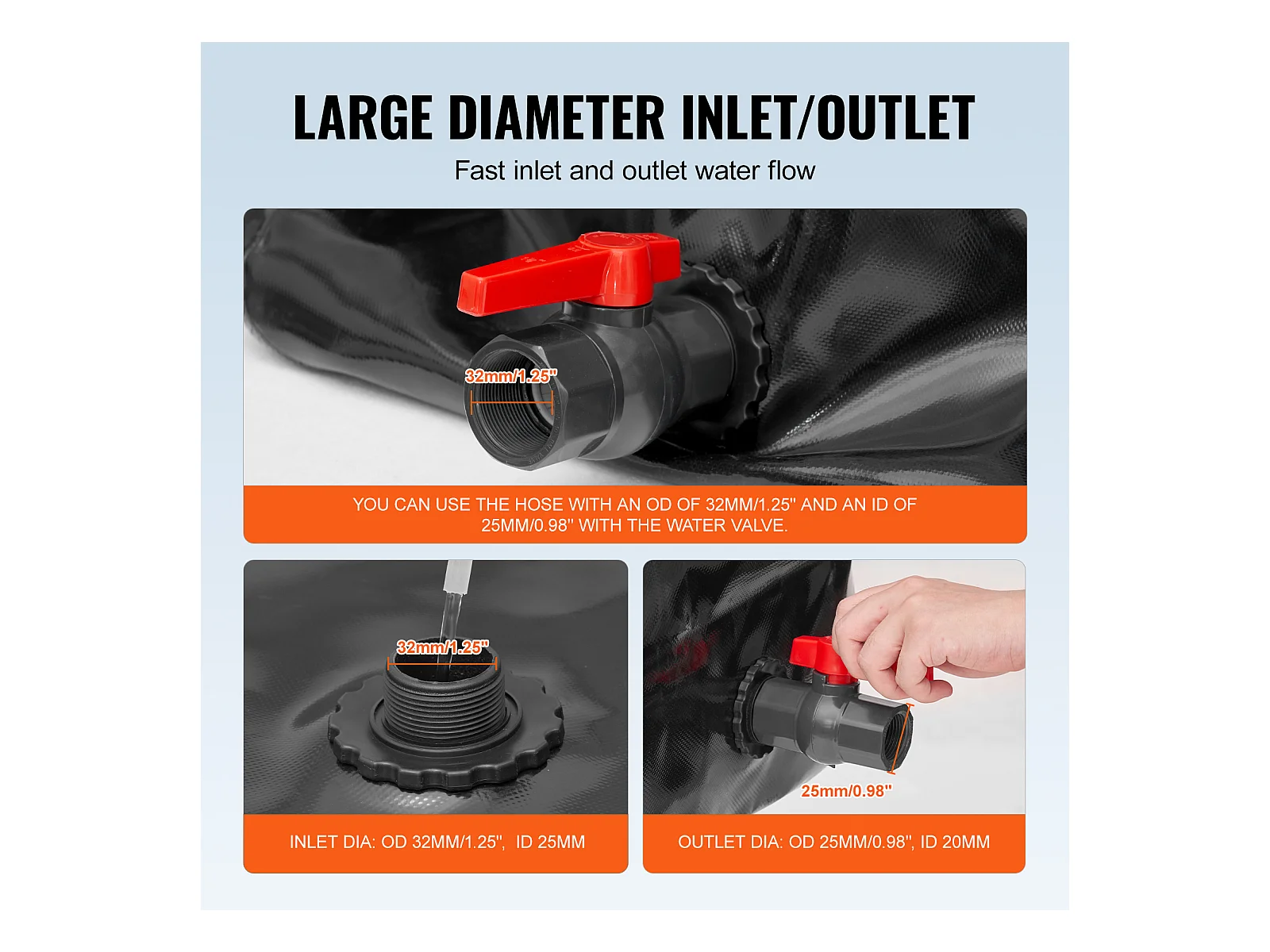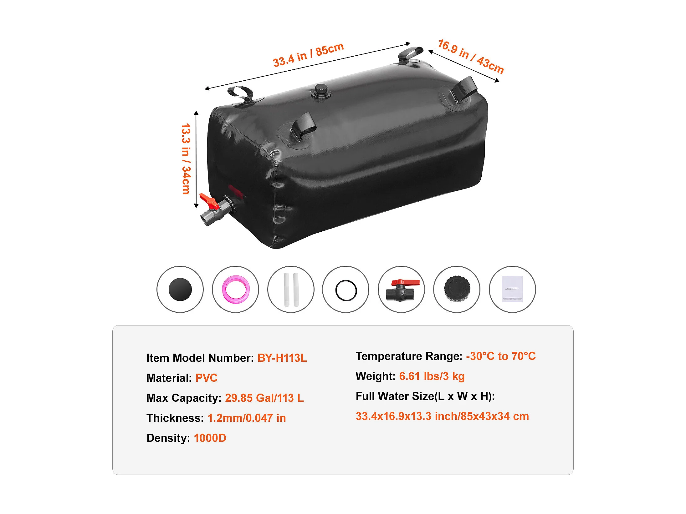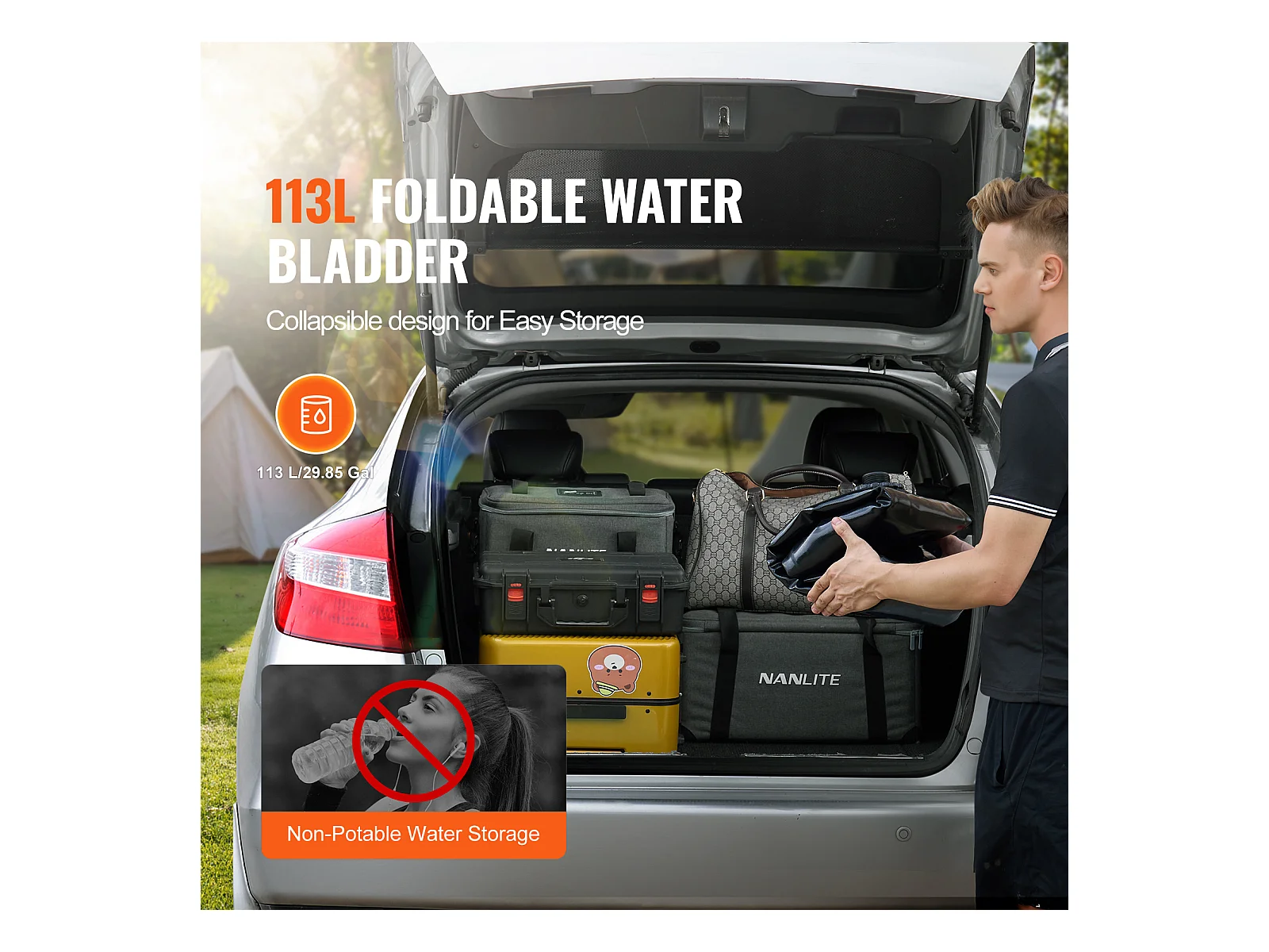 Draagbare Watertank SucceBuy 113L, Opvouwbaar van PVC, Zwart, Watertank voor Camper, Grote Capaciteit, Draagbaar, Brandpreventie, Camping
