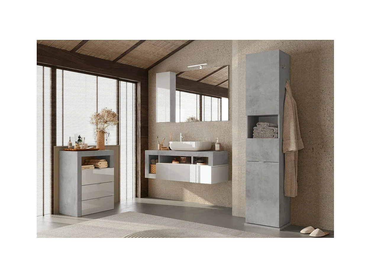 Draaibare badkamerkolom met spiegel, 2 deuren en 1 lade, collectie BURA. Kleur: grijs met betonlook