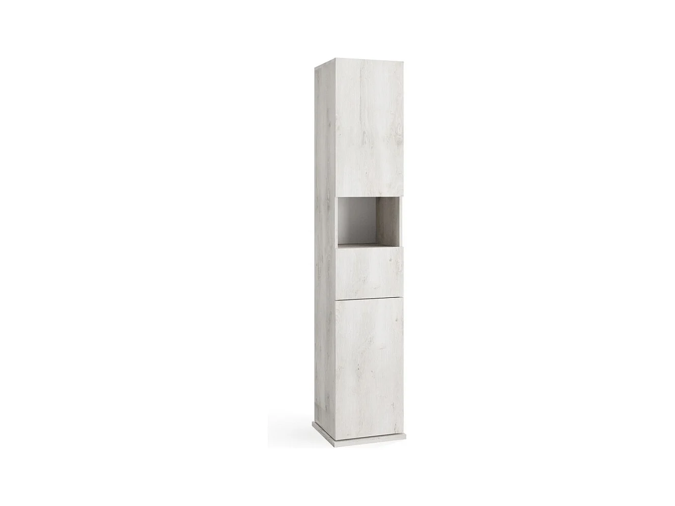 Kolomkast voor de badkamer, 1 deur, 5 planken, collectie ISORA. Kleur grijs eiken