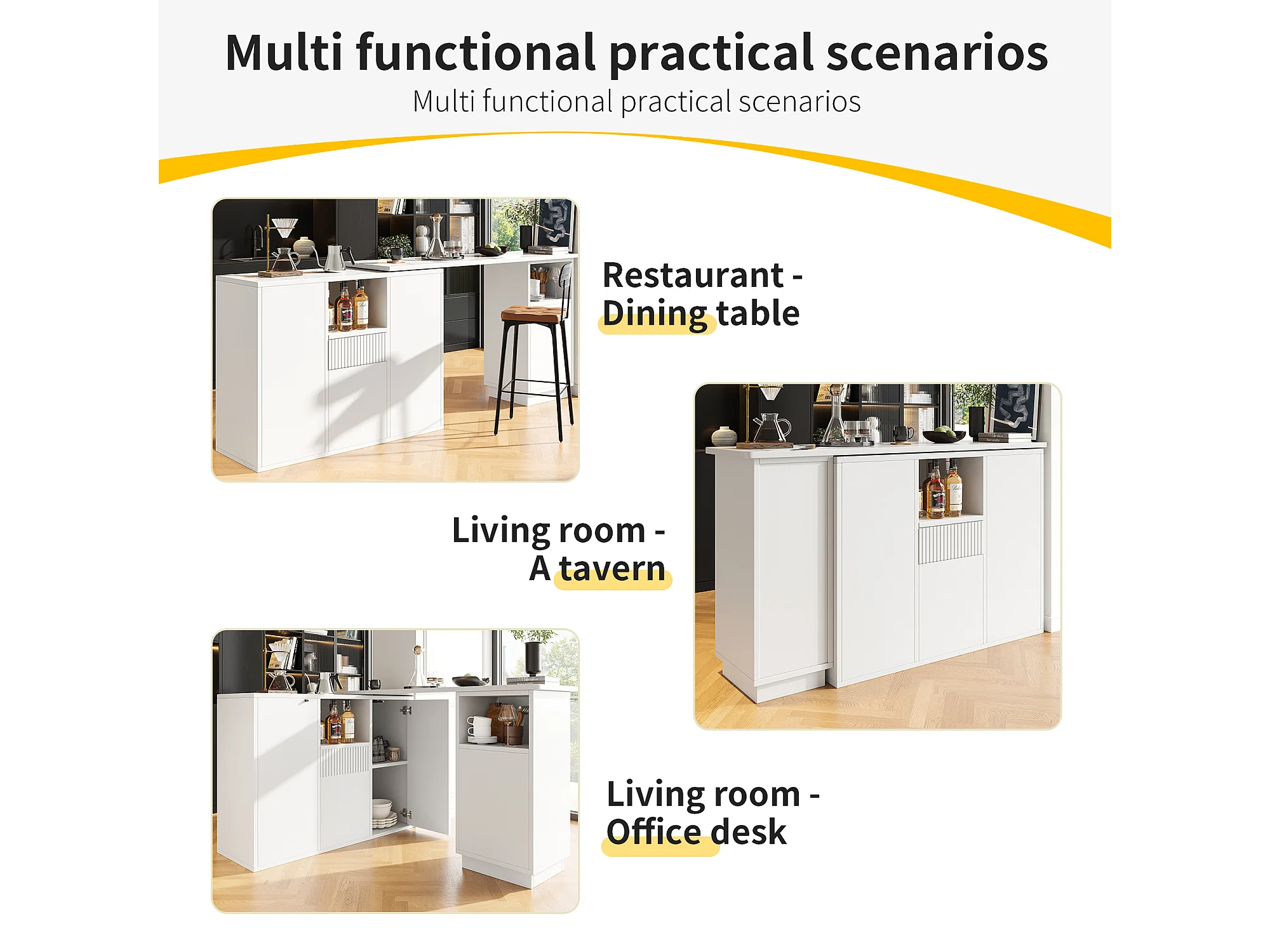 Draaibare bartafel - 210 x 30 x 100,9 cm - kookeiland met deuren en lade - MDF - wit