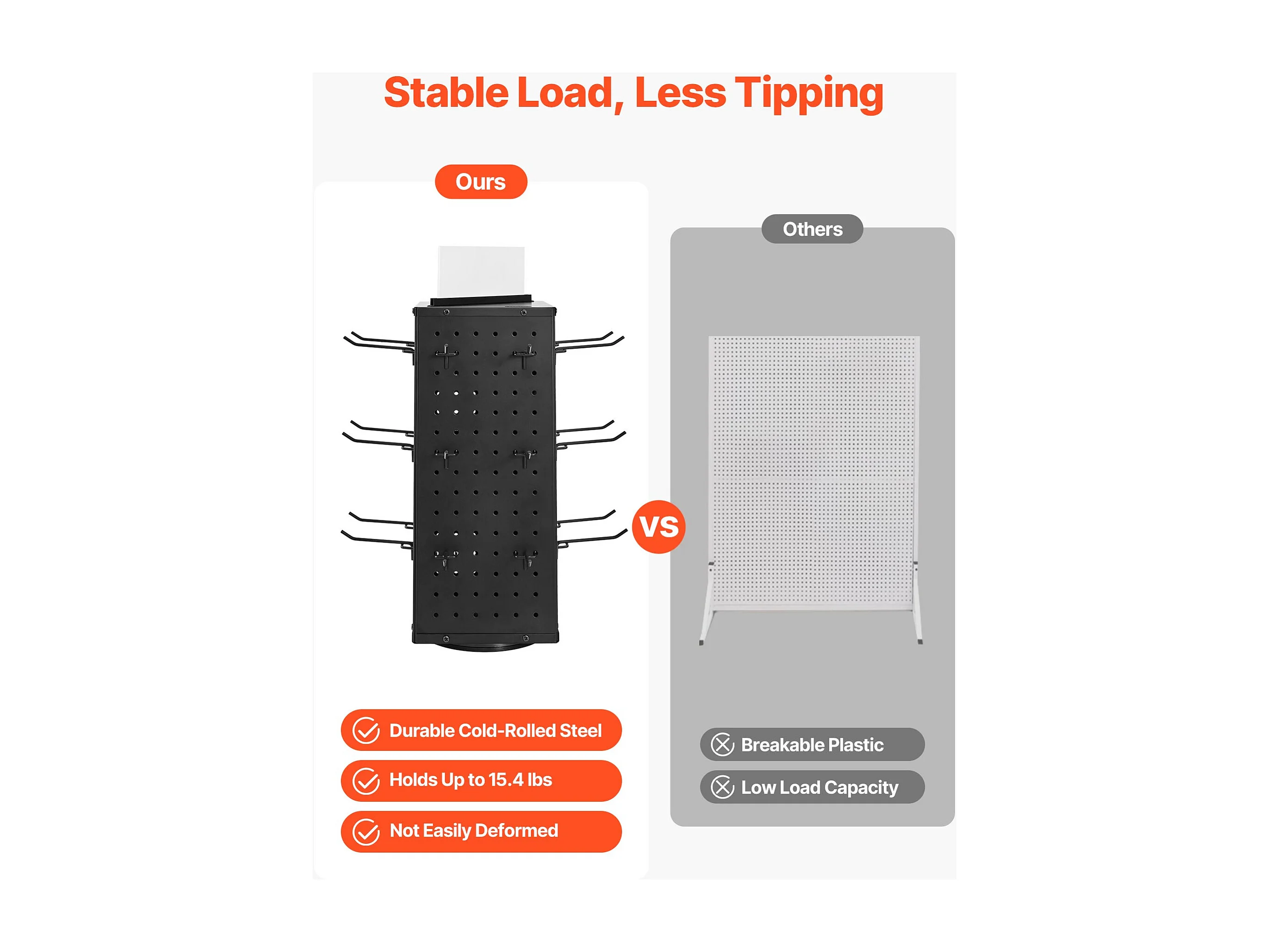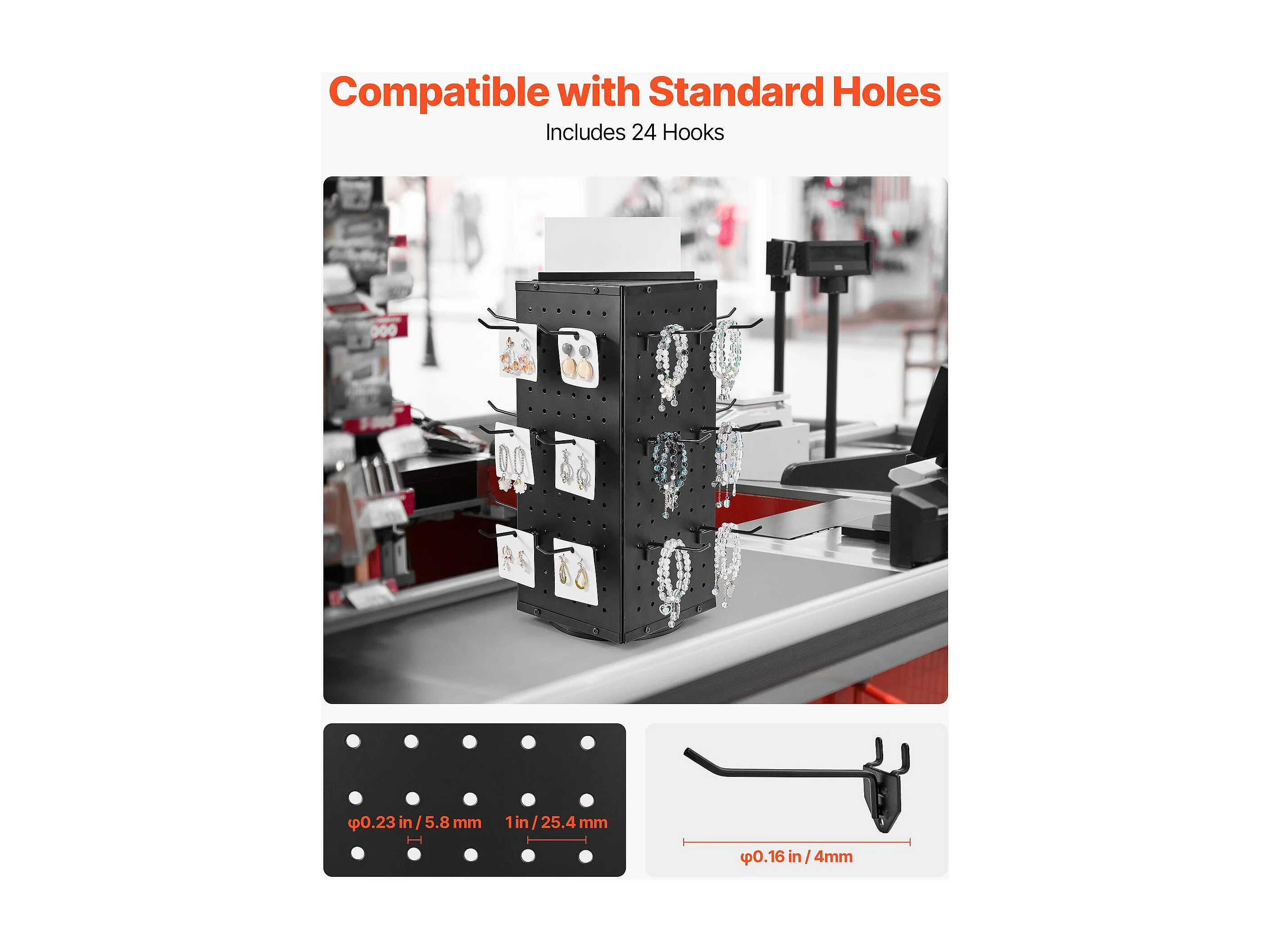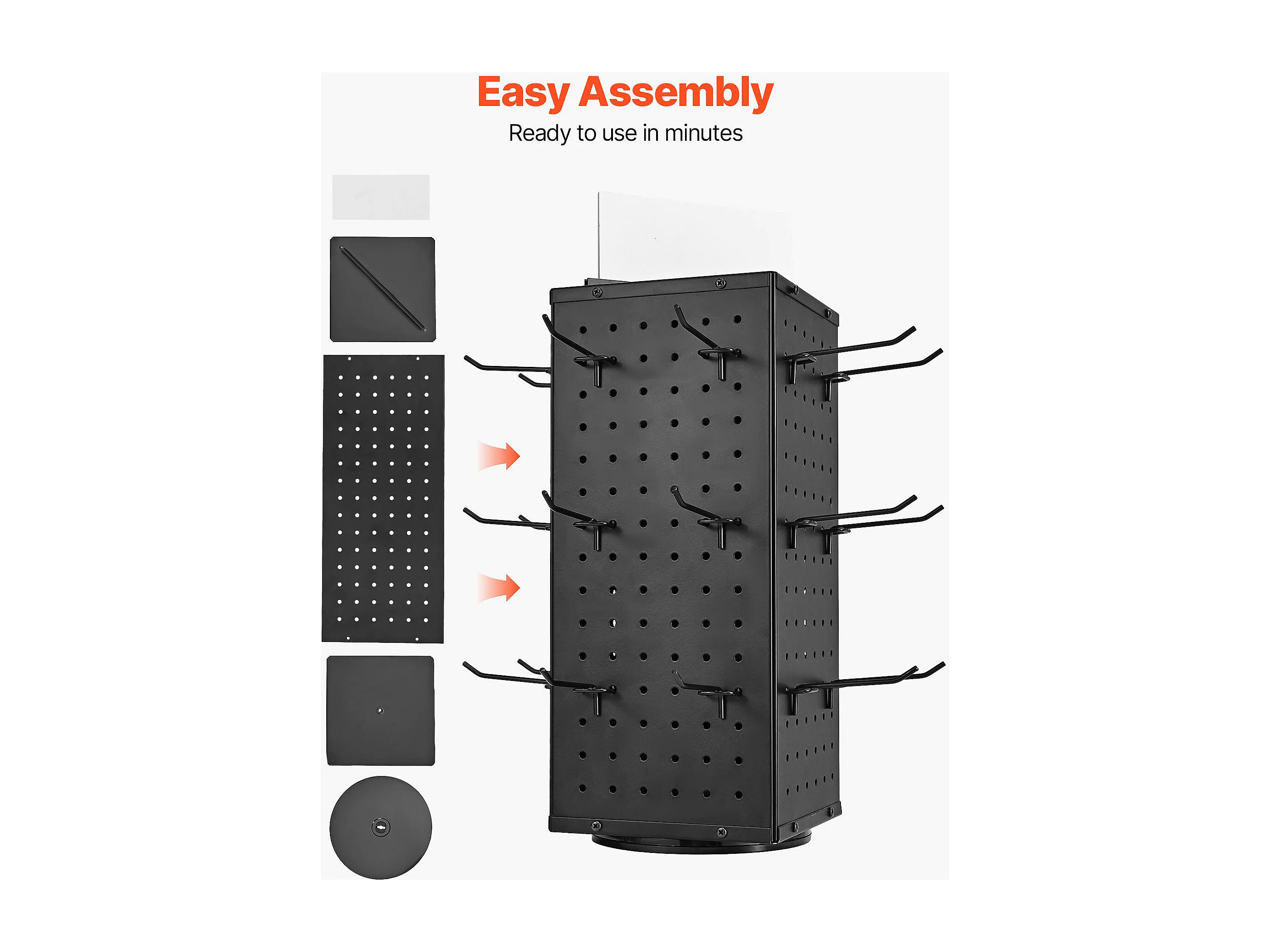 Draaibare Geperforeerd Paneel Organizer SucceBuy, 18,8 x 18,8 x 52 cm, 4 Zijden, met 24 Haken, Opbergorganizer van Dik Koudgewalst Staal
