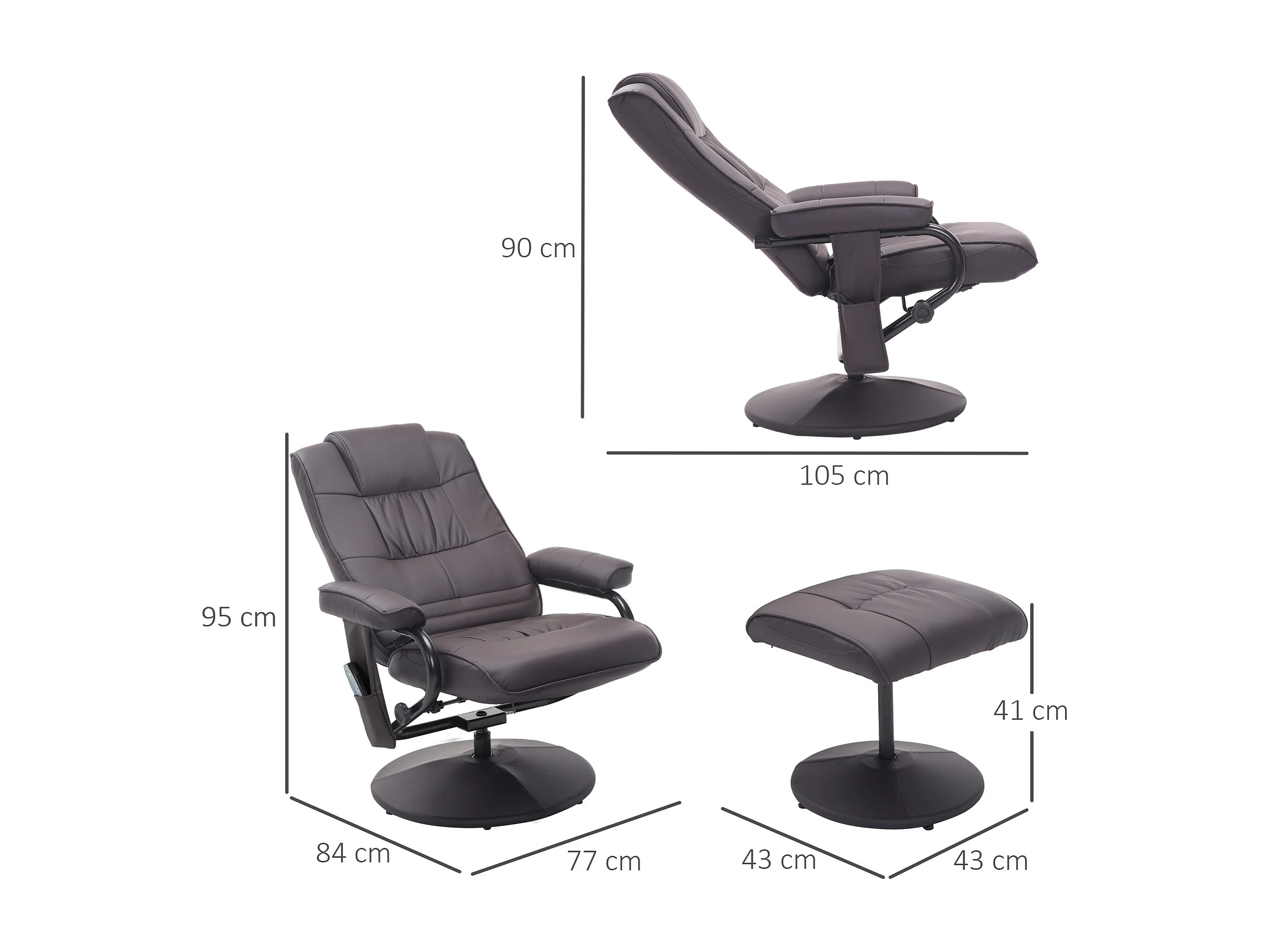Relaxfauteuil met voetenbank, massagefunctie, 10 trillingspunten, kunstleer, bruin (80x86x99 cm)
