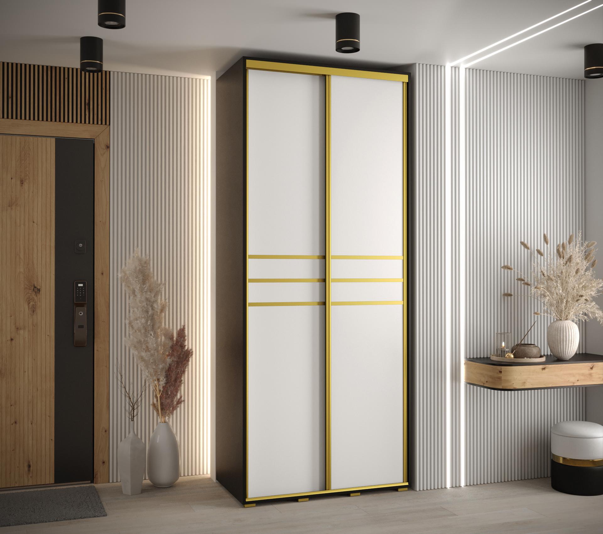 DAVOS 4 KLEDINGKAST MET SCHUIFDEUREN 235,2/200/45 3 deuren (Zwart/Wit/Goud)