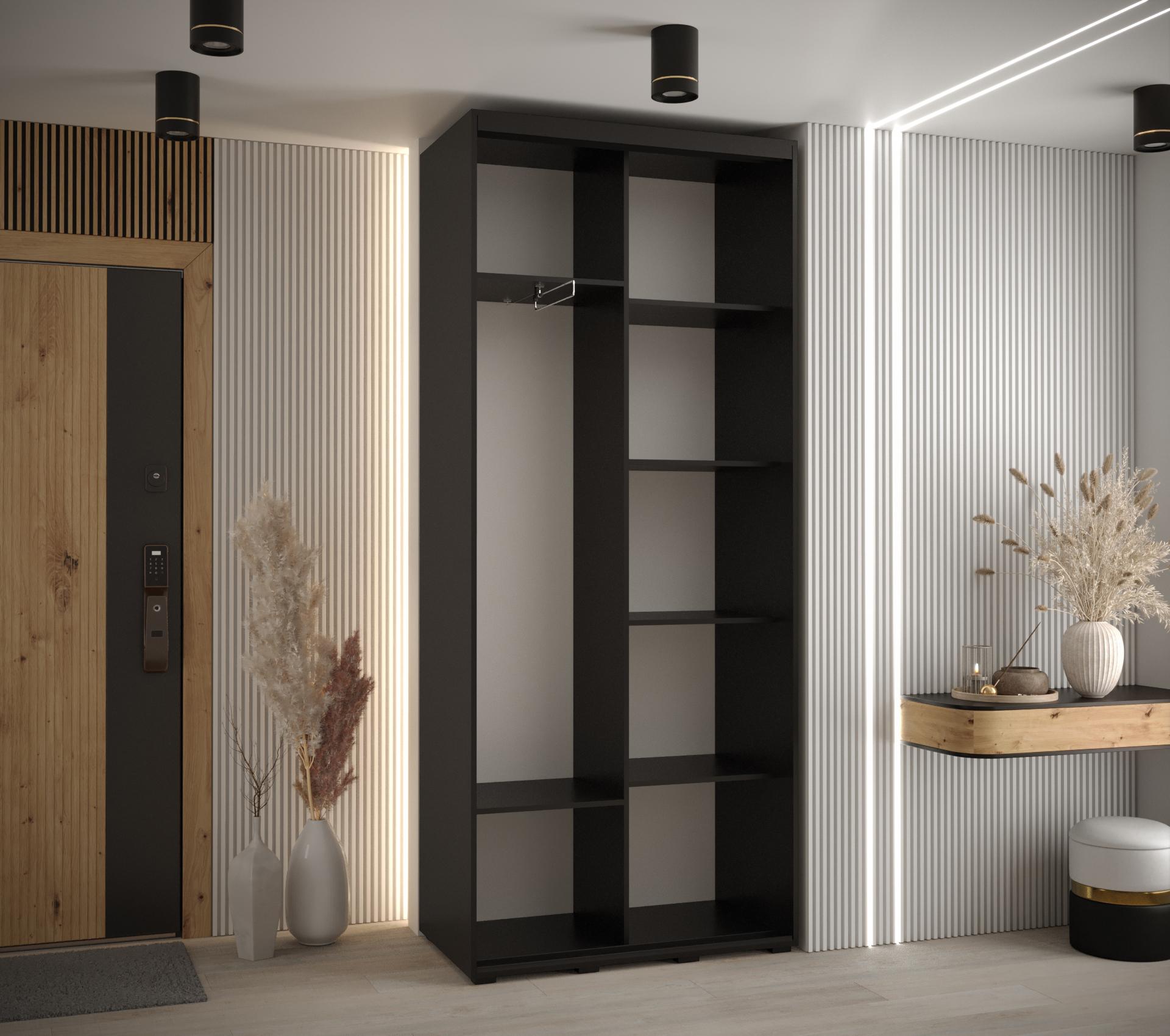 DAVOS 6 KLEDINGKAST MET SCHUIFDEUREN 235,2/100/45 2 deuren (Zwart/Zwart/Zwart)