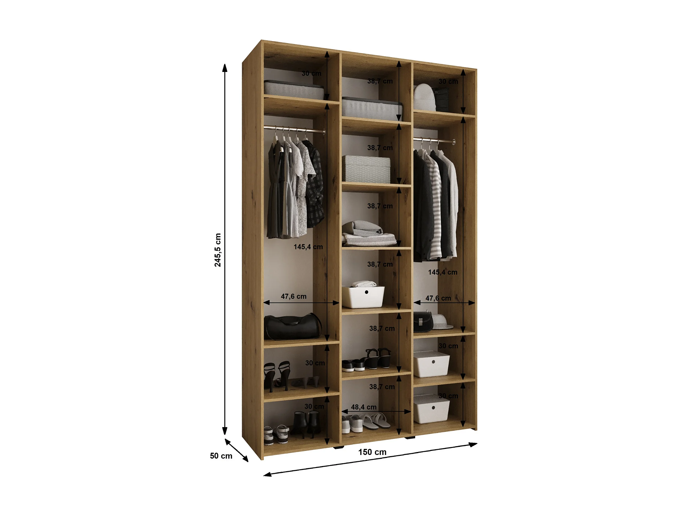 Draaideurkast Como 3 245,5/150/50 3-deurs (wit/goud)