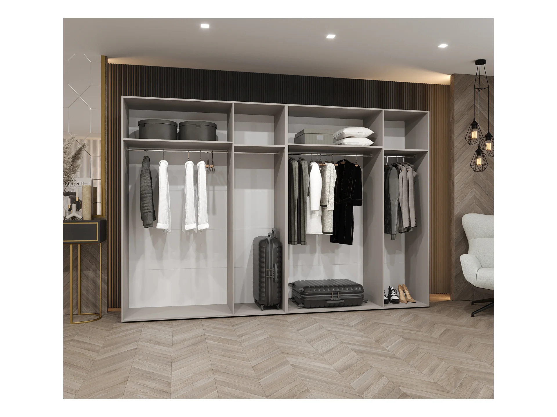 Draaideurkast Piano 3 300 (150x2) / 202 / 52 (Wit + handgrepen: Goud)