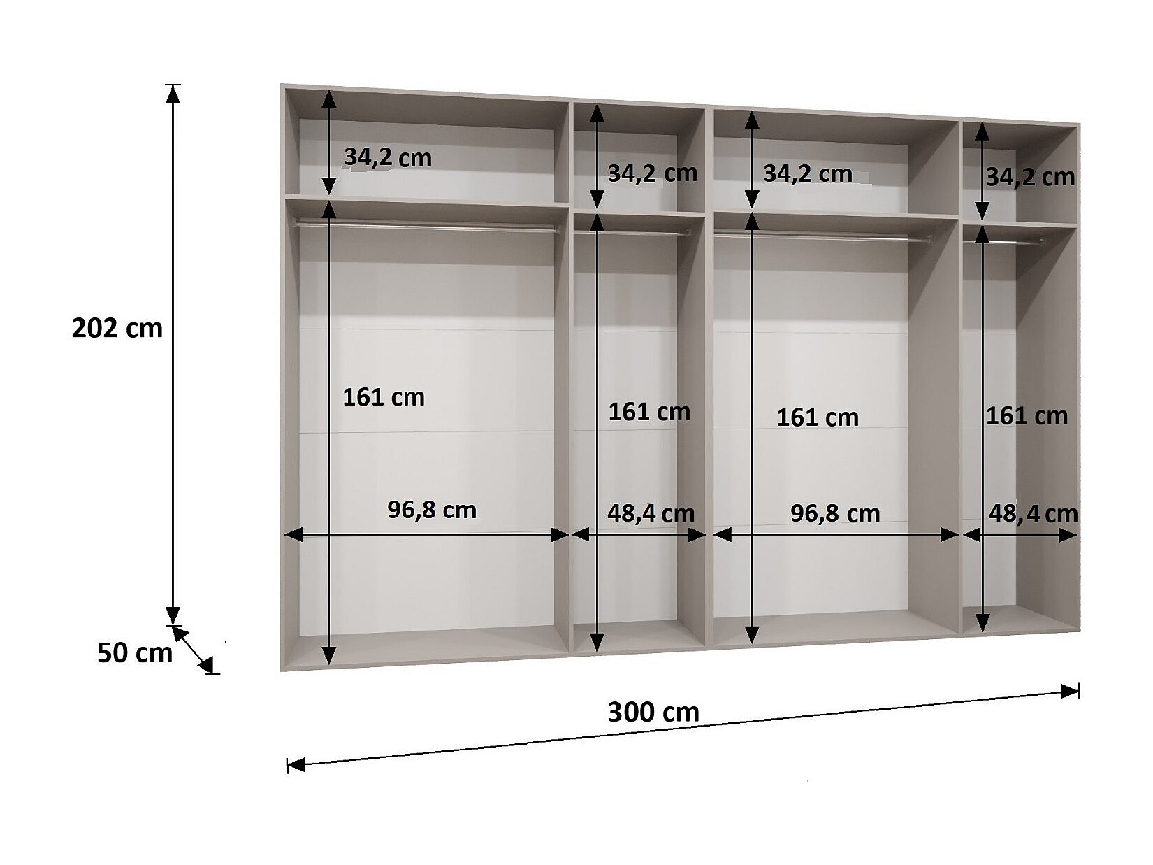 Draaideurkast Sandi 3 300 (150x2) / 202 / 52 (Kasjmier + handgrepen: Kasjmier)