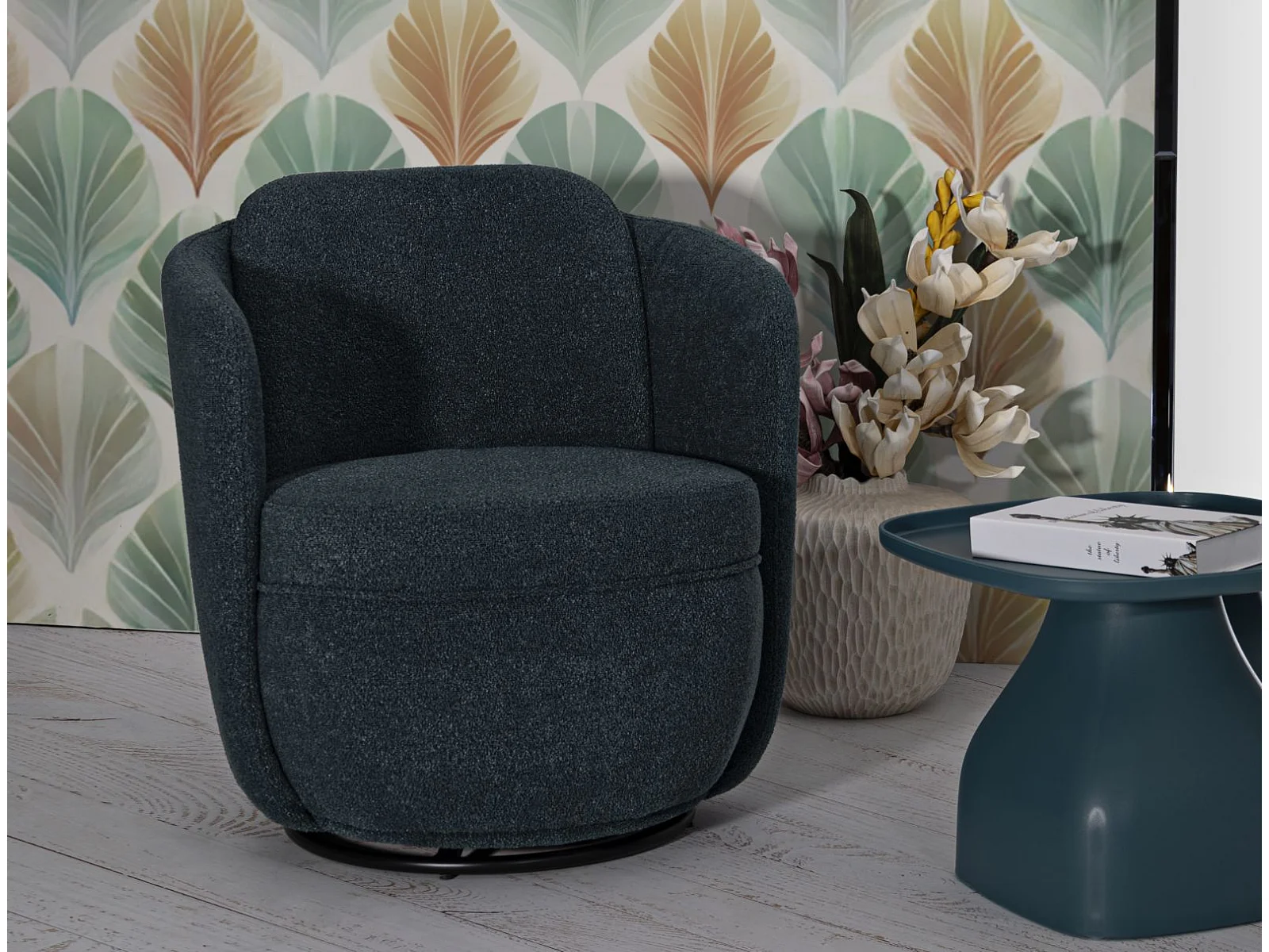 Draaifauteuil in blauwgroene stof 70x72x75 cm