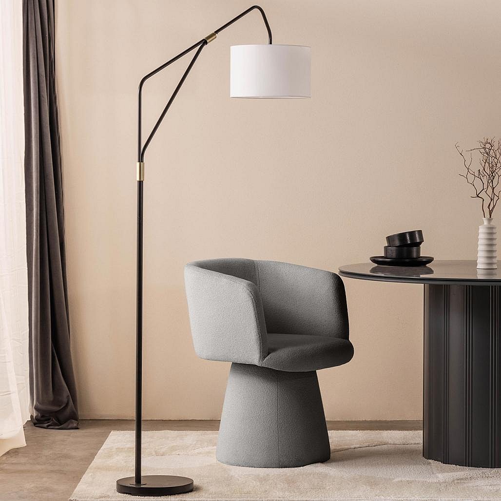 Grote gebogen lamp - Metaal en marmer - H180 cm - Mat zwart - OMBRAGE