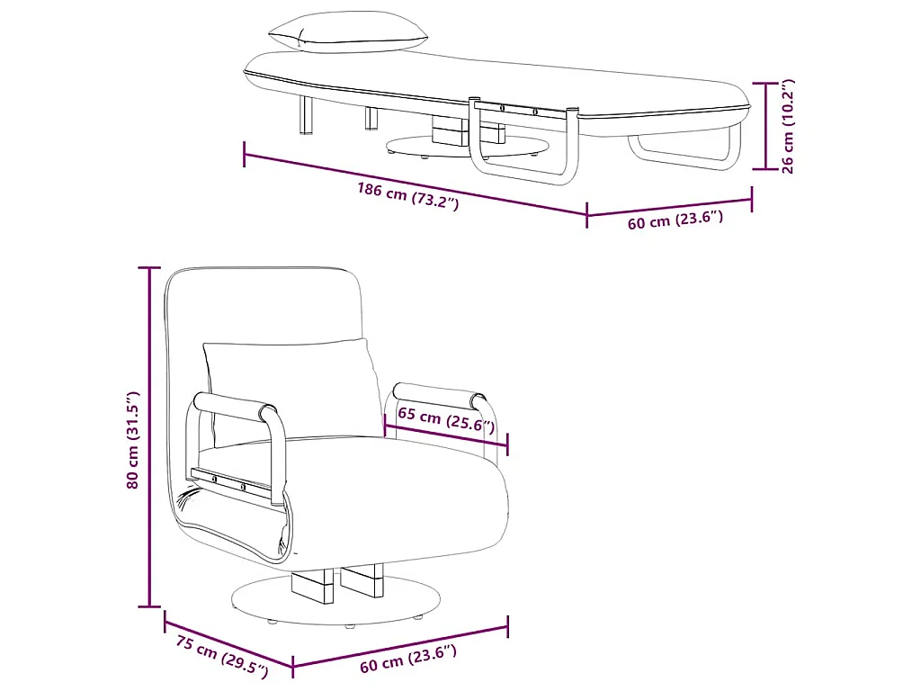 Draaistoel en slaapbank 60x75x80 cm lichtgrijs