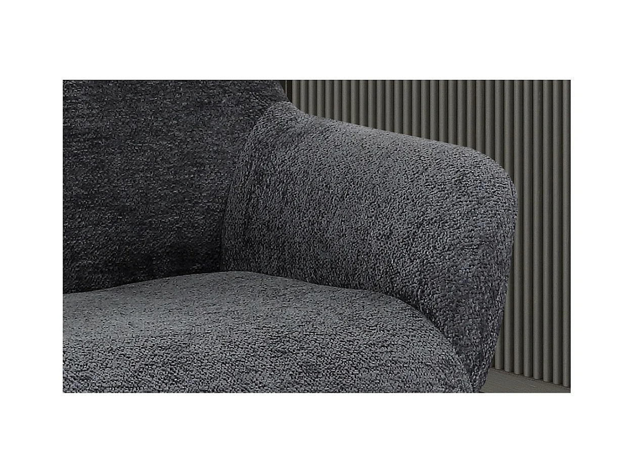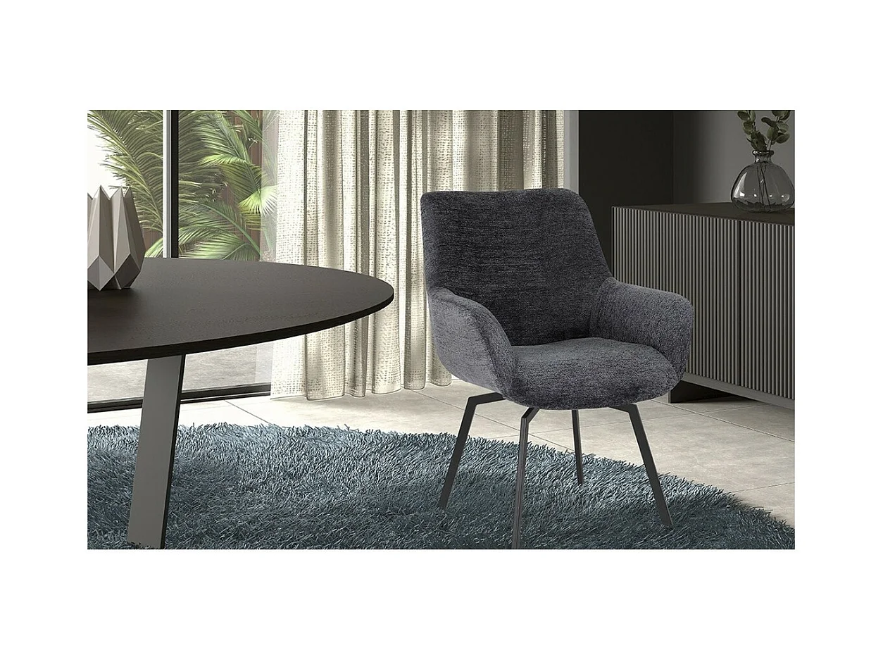 Stoel met lusvormige bekleding voor de eetkamer in donkergrijze kleur. Collectie ALCAN