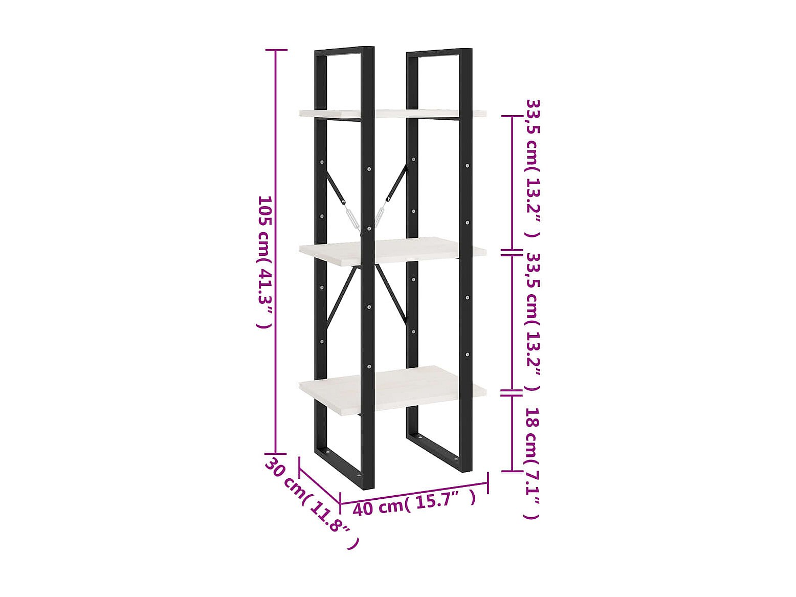 Melvin Dean Boekenkast met 3 schappen 80x30x105 cm massief grenenhout wit