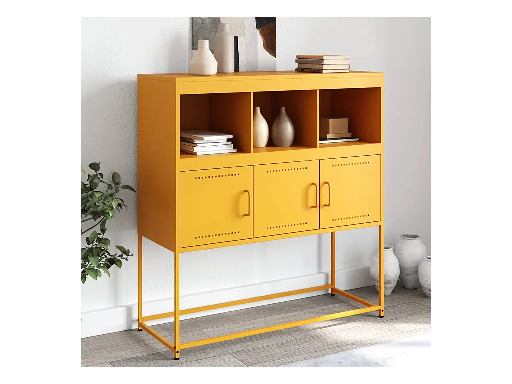 Dressoir 100,5x39x107 cm staal mosterdgeel
