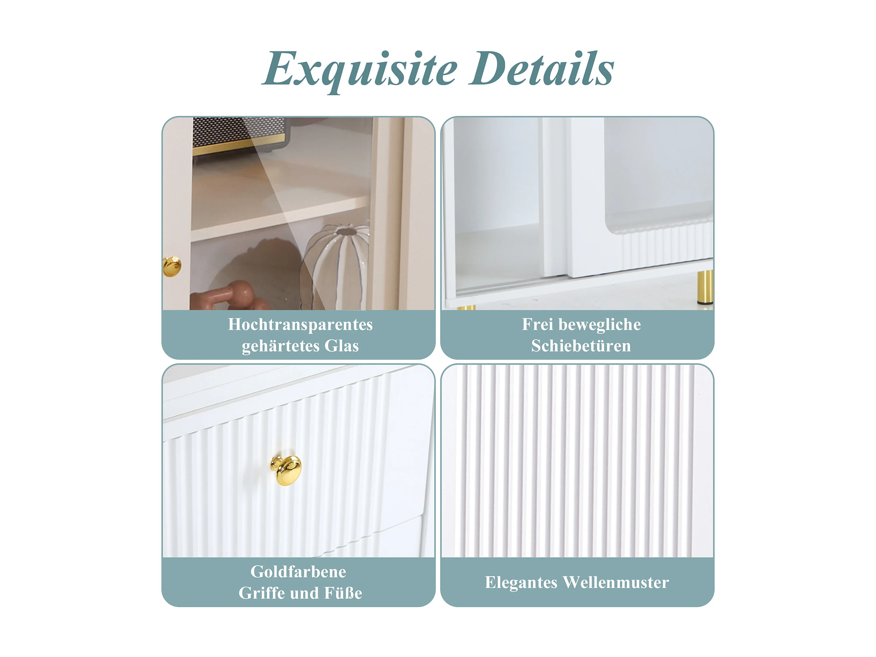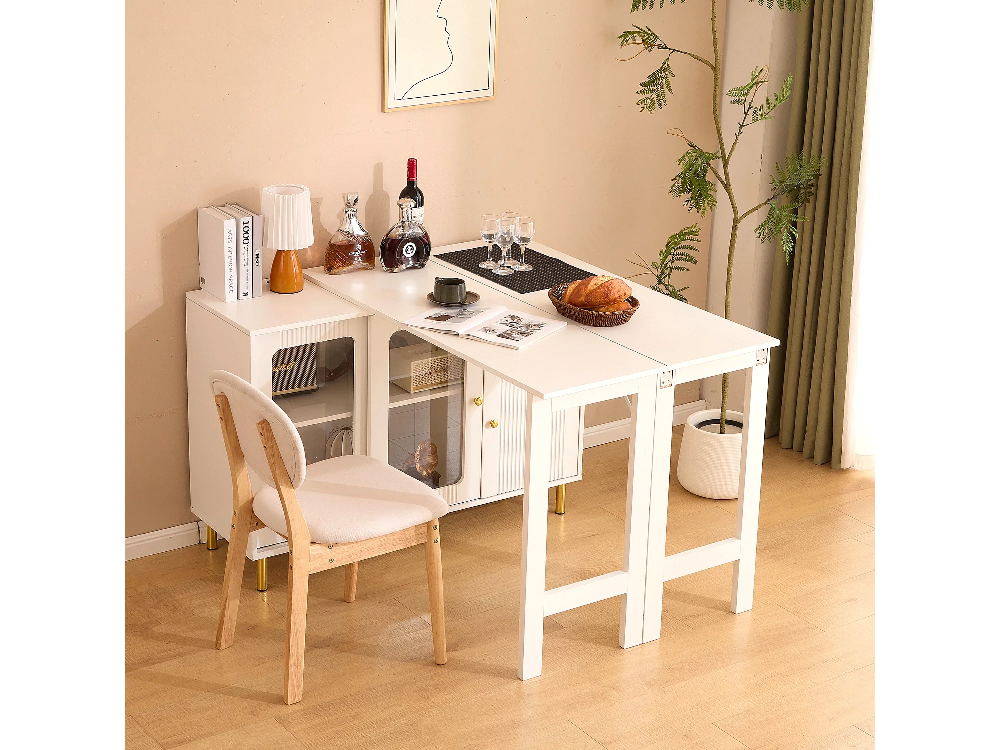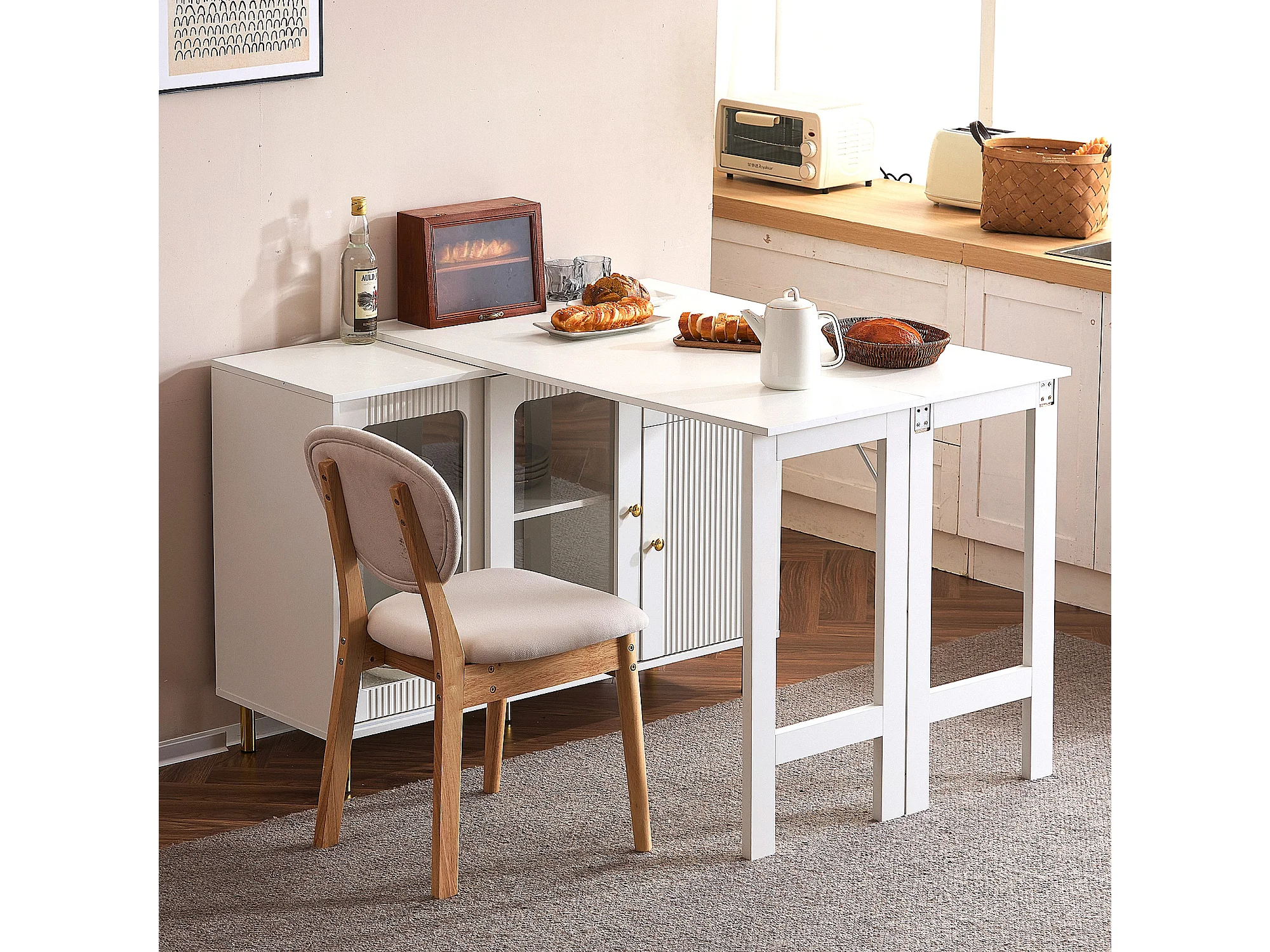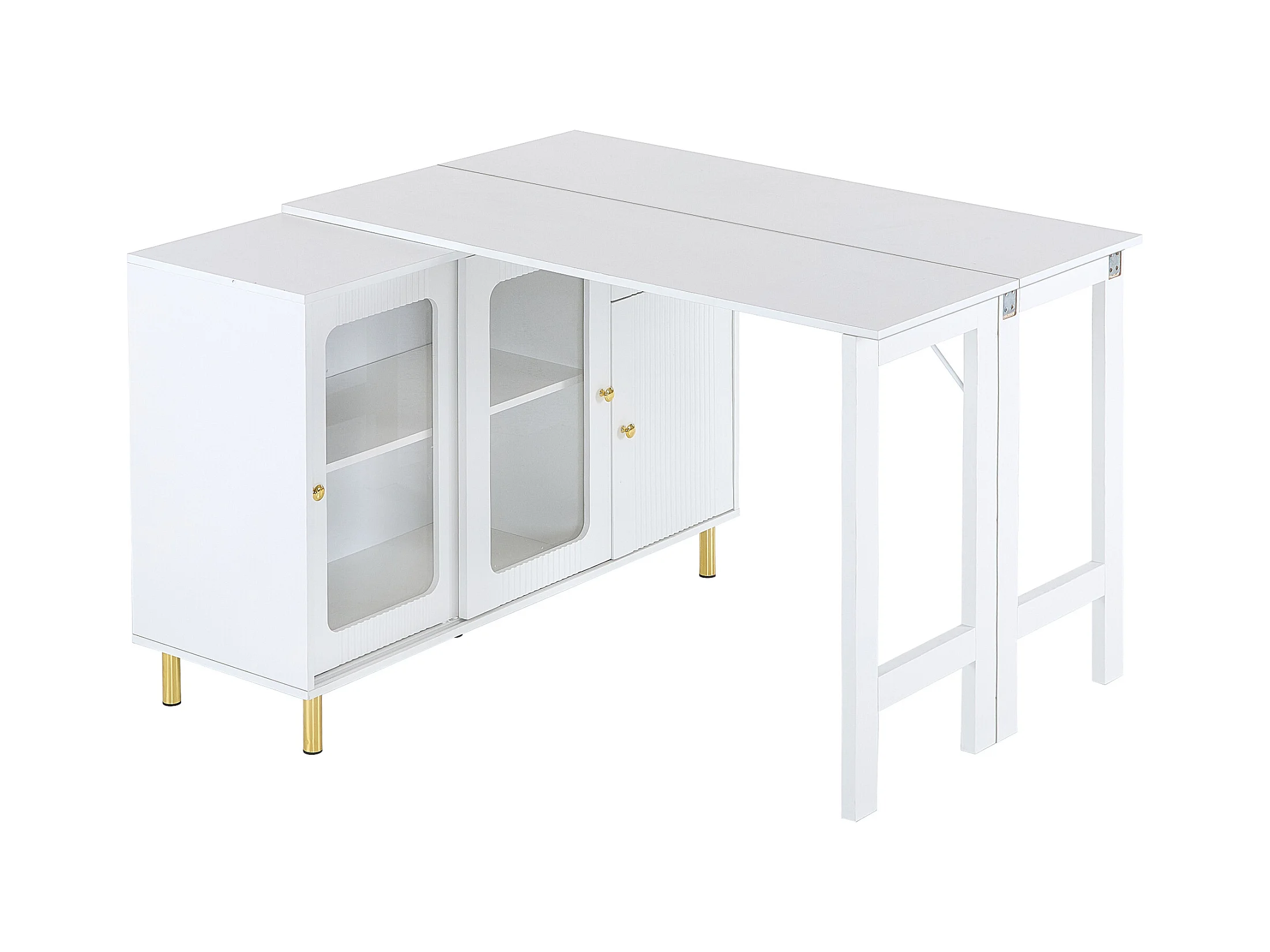 Dressoir 122x80x82cm met 3 deuren en 1 lade, uitschuifbaar en draaibaar bovenblad, witte behuizing