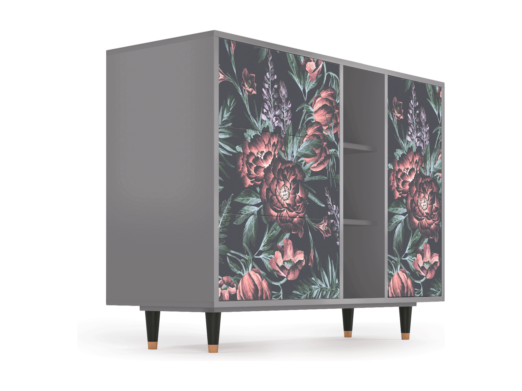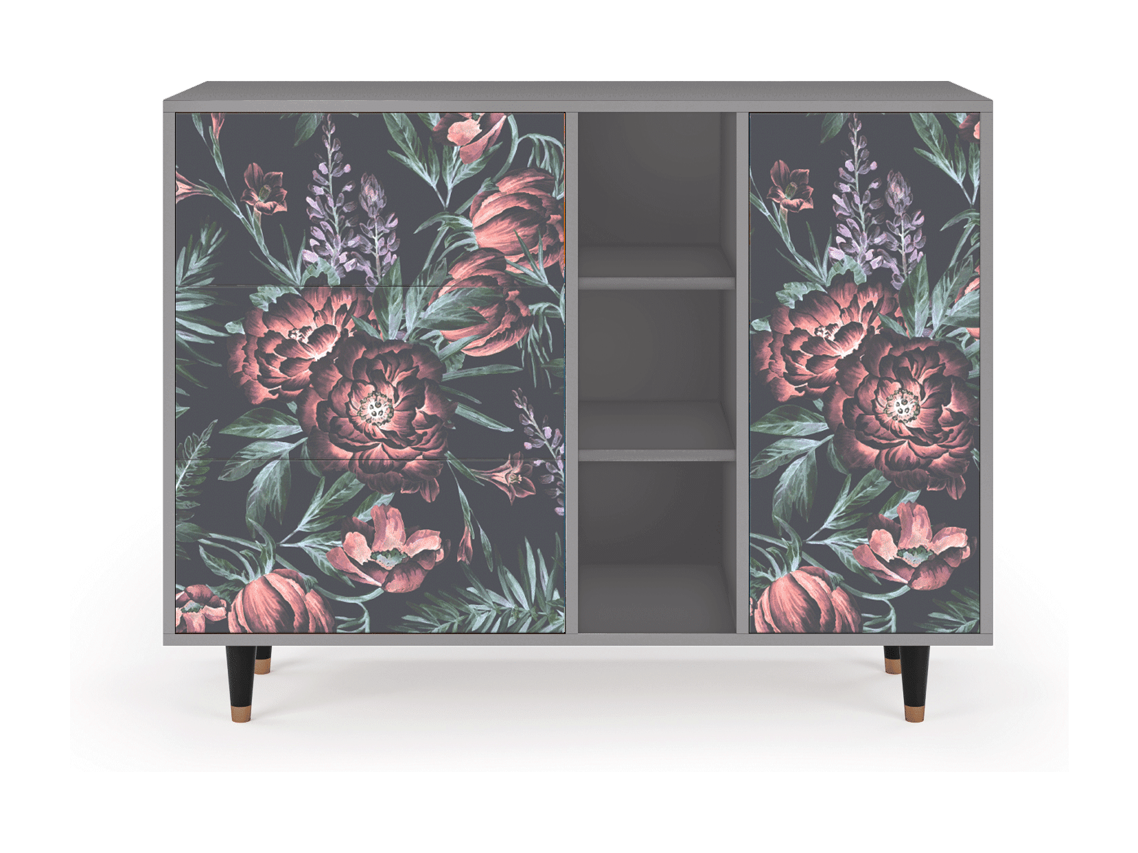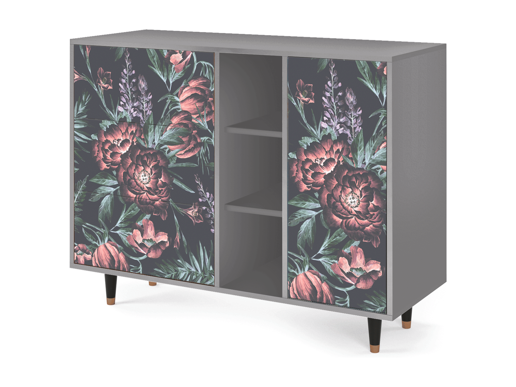 Dressoir - 125x98x48 cm - BS2 - Dark Peonies, Grijs
