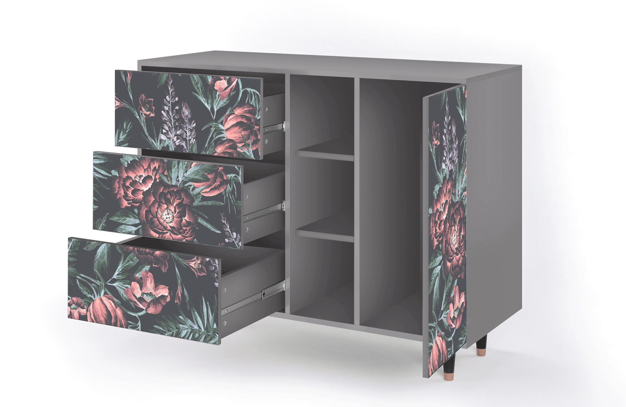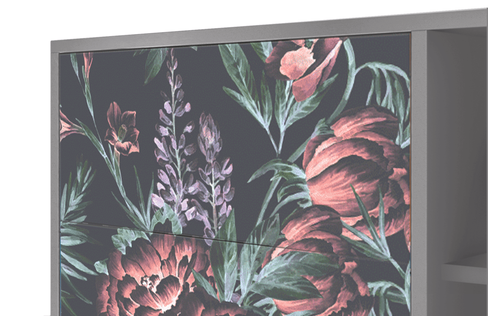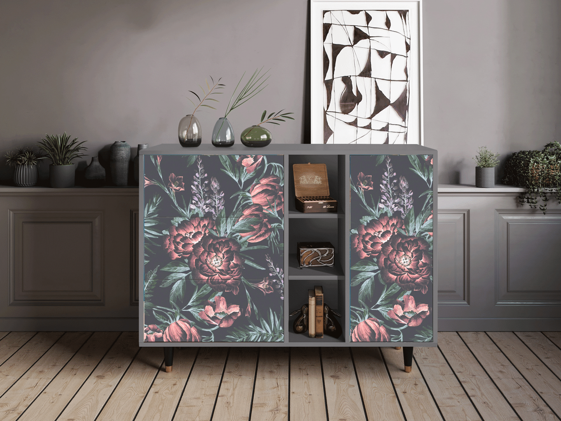 Dressoir - 125x98x48 cm - BS2 - Dark Peonies, Grijs