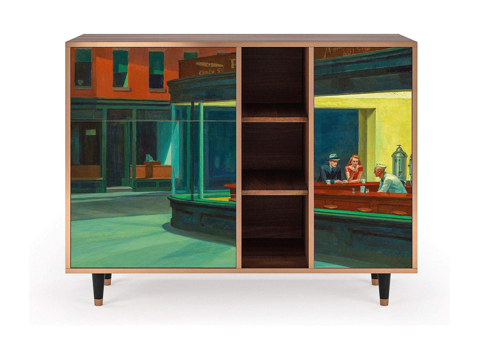 Dressoir - 125x98x48 cm - BS2 - Nighthawks by Hopper, Walnoot
