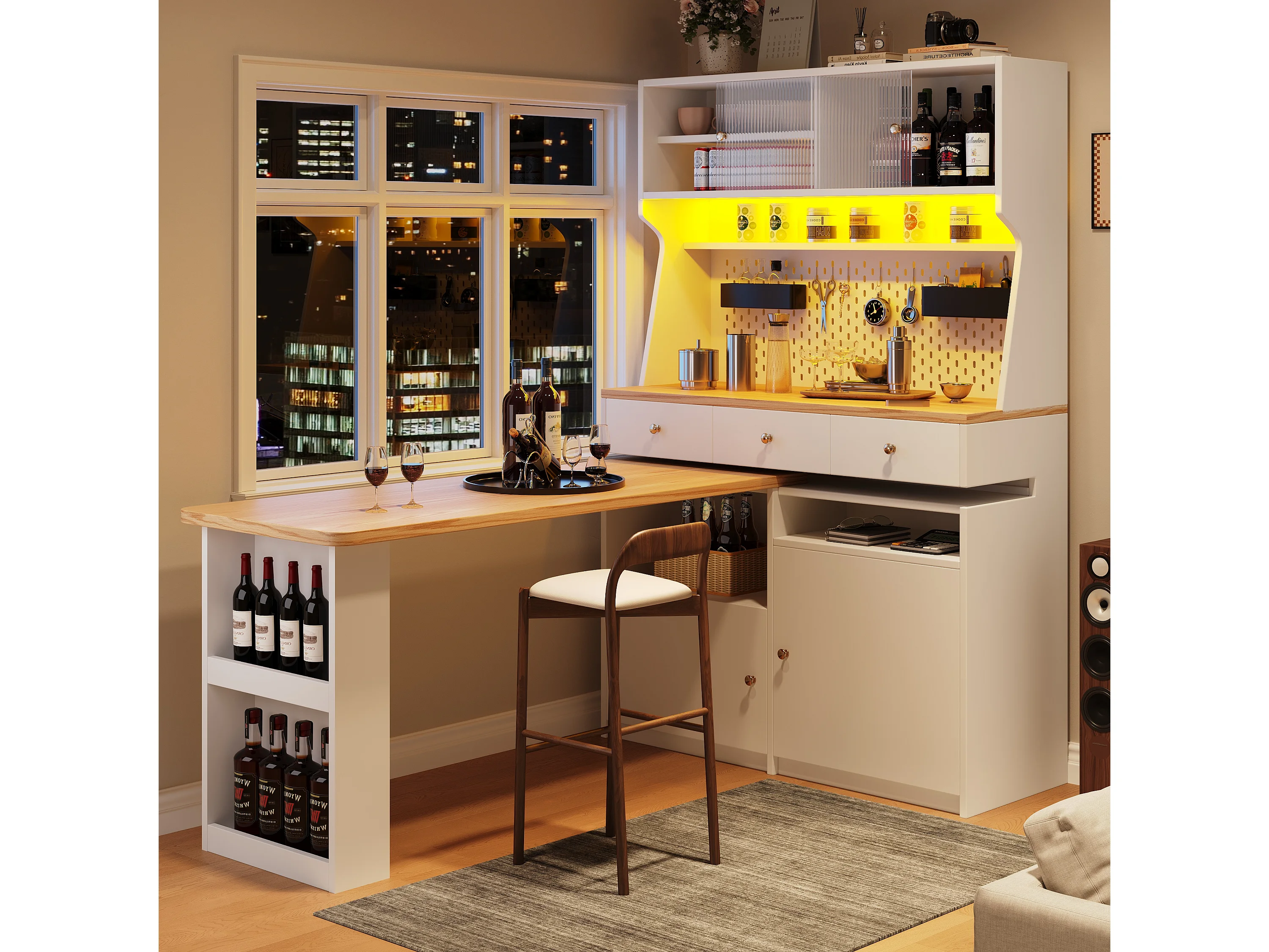 Dressoir 137x45x177,7 cm met ledverlichting, drie lades, tafel en hangpaneel. Gemaakt van wit MDF, geschikt voor zowel de woonkamer als de eetkamer.