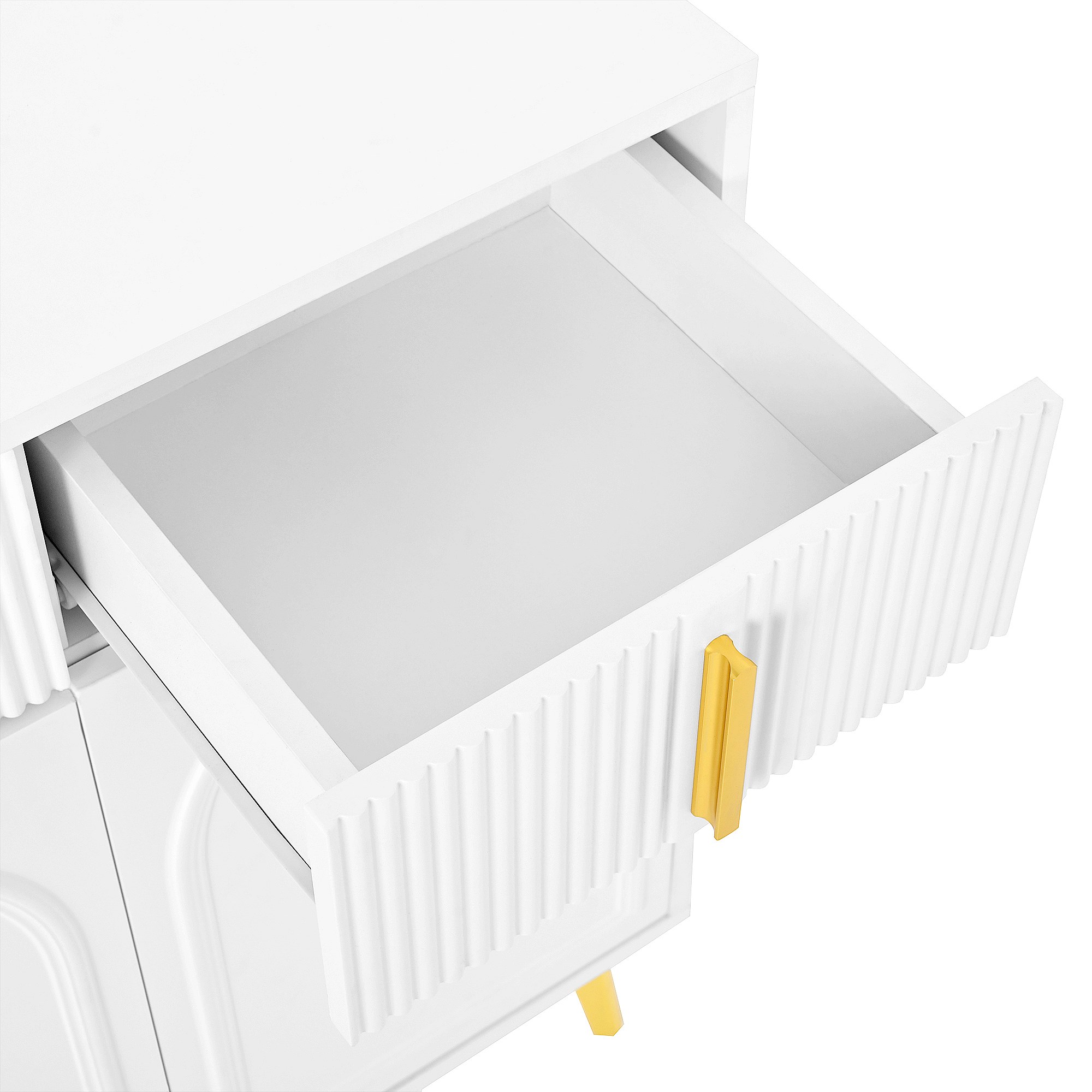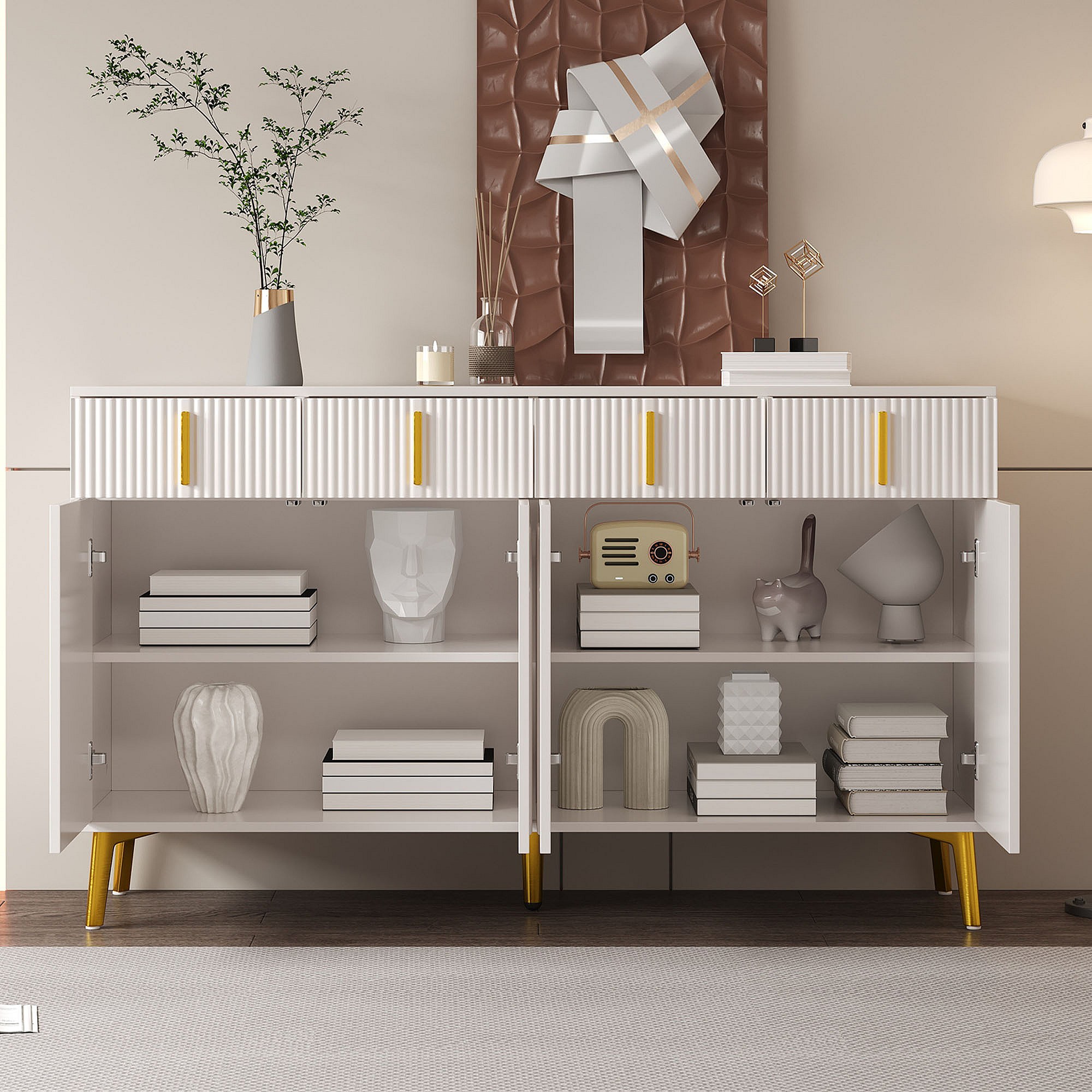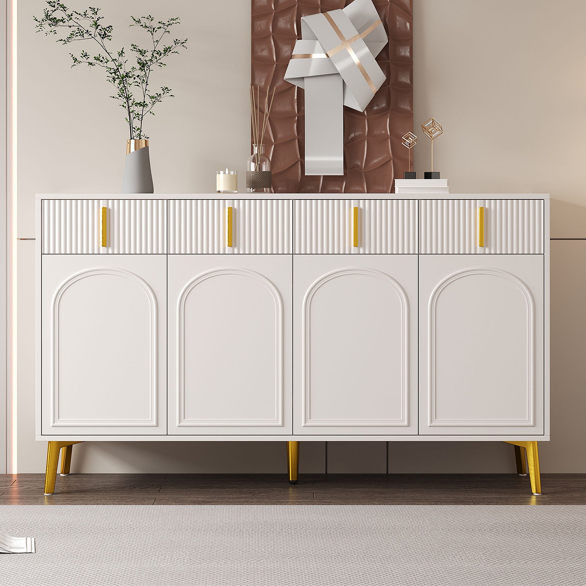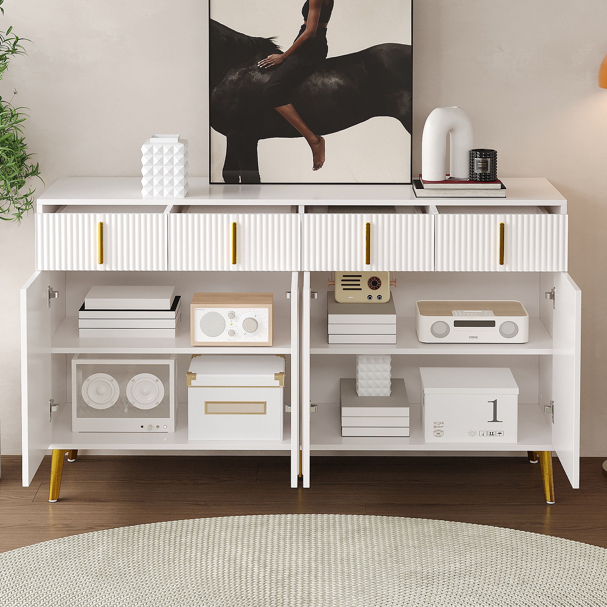 Dressoir 140 x 37,8 x 82 cm – 4 deuren, 4 laden met afneembaar laminaat – Gouden handgrepen en poten – Meubels voor woonkamer en eetkamer