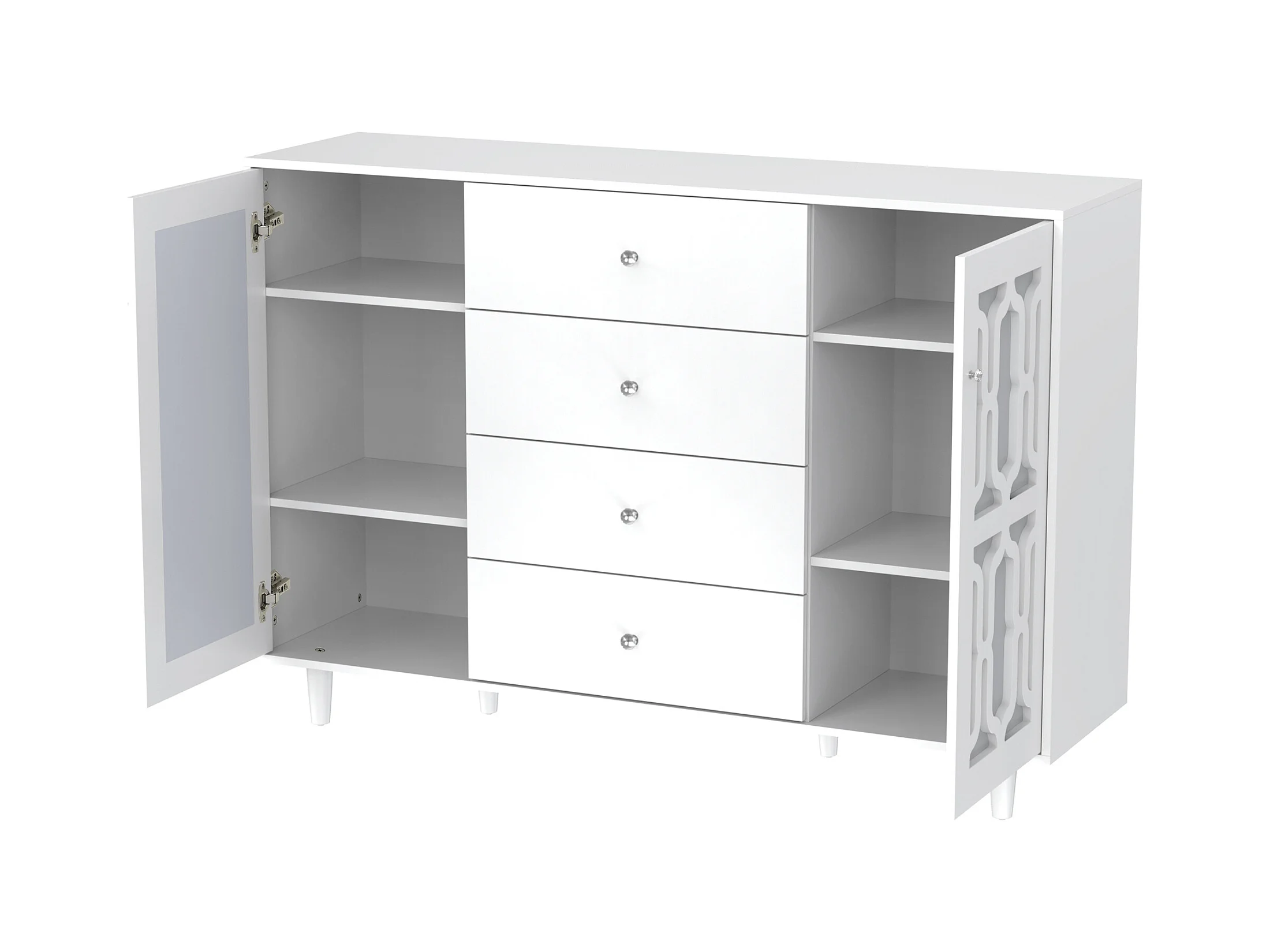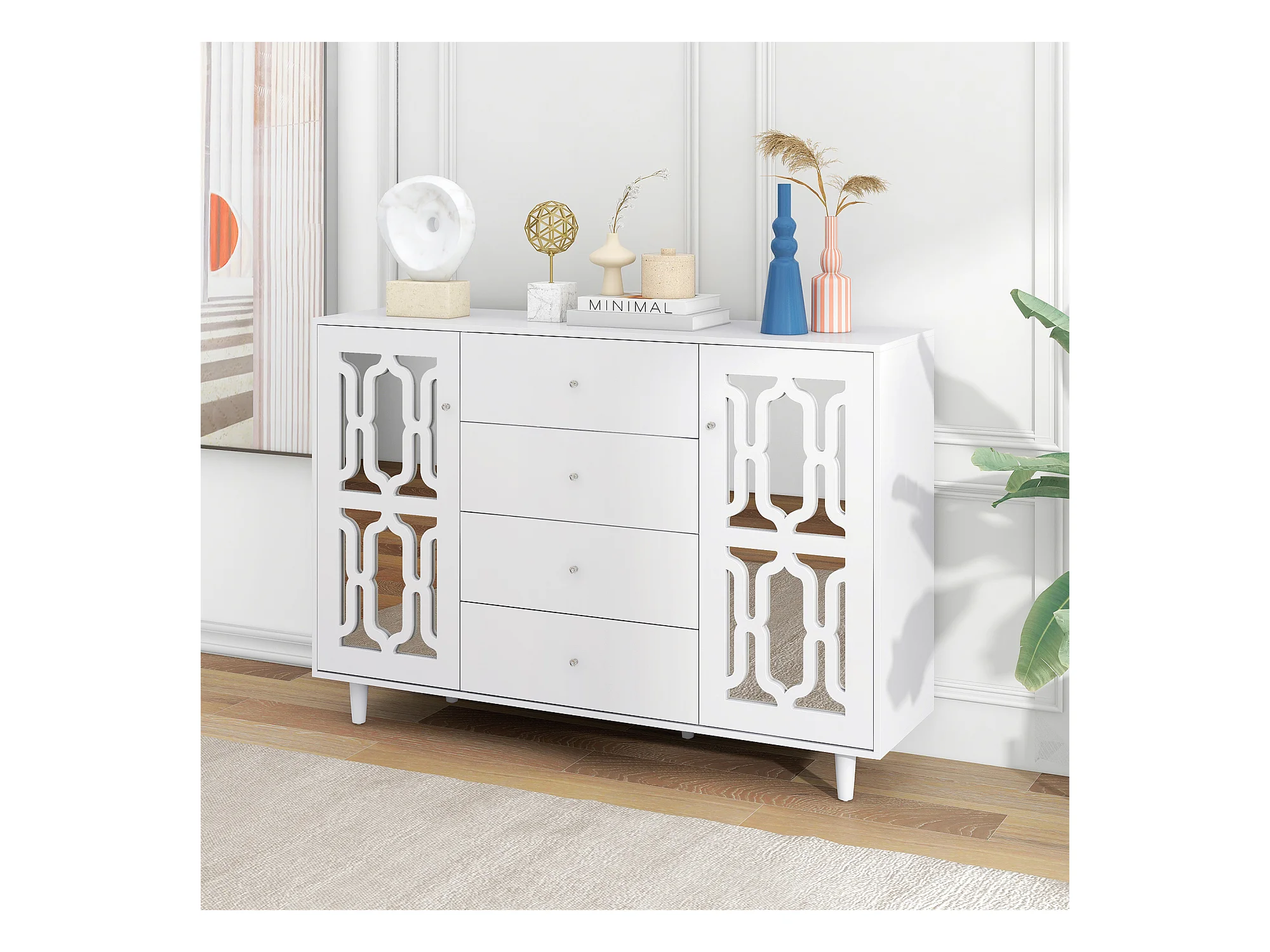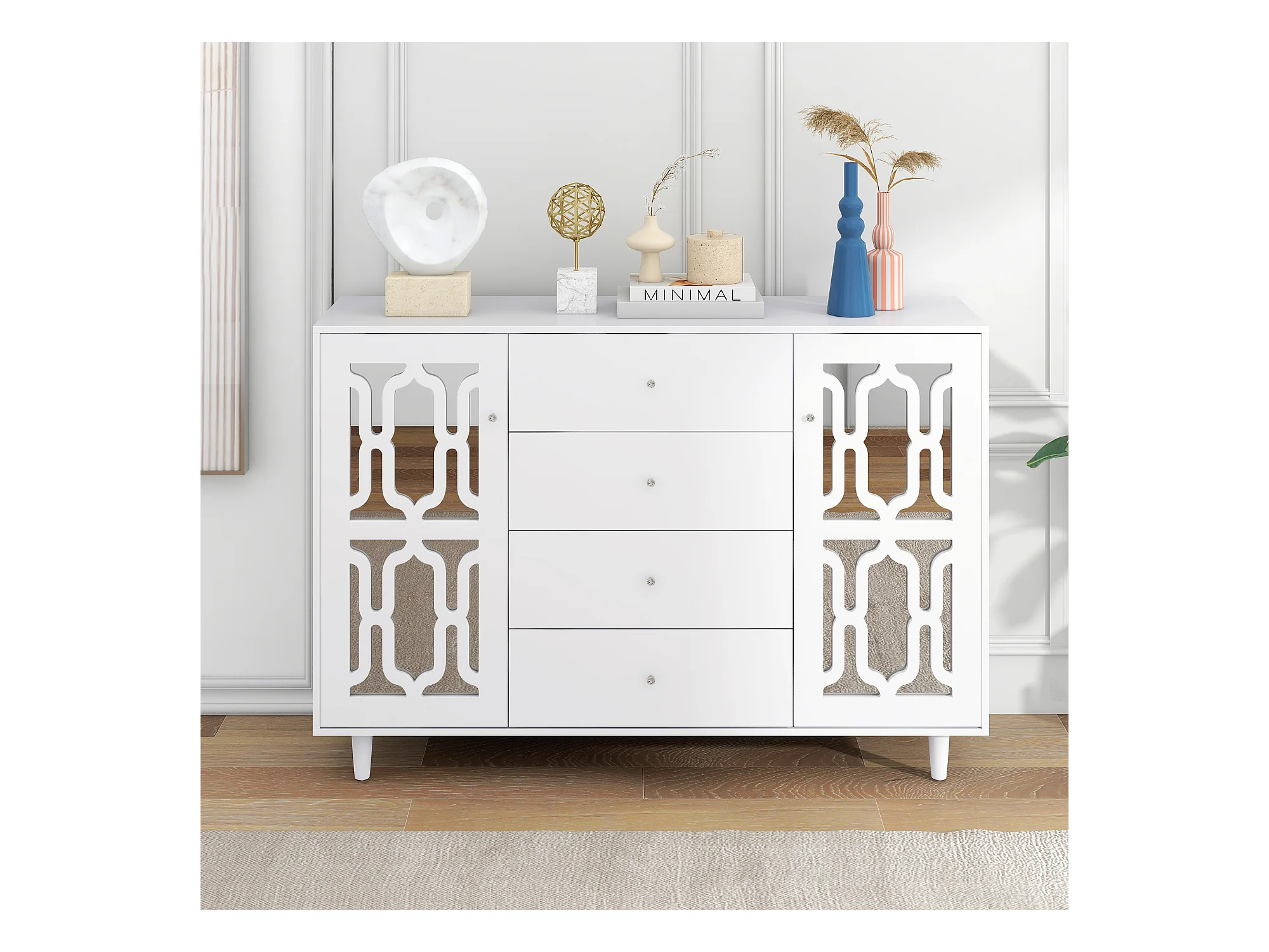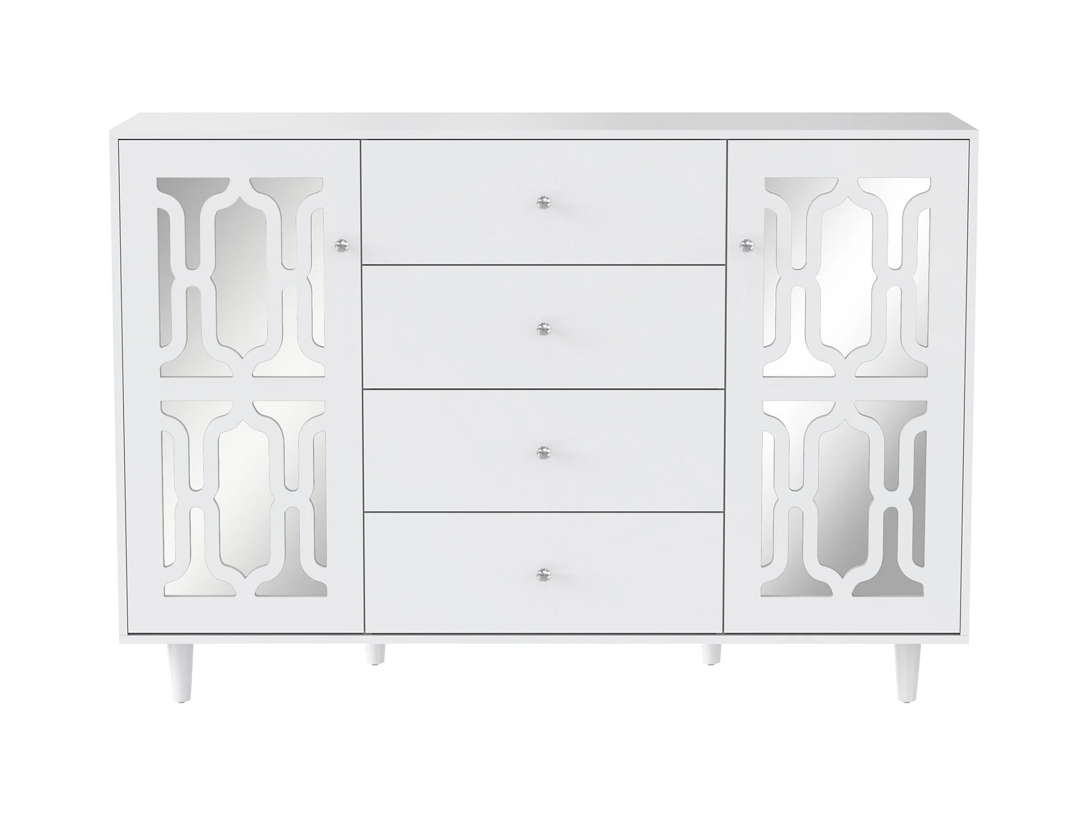 Dressoir 160x40x84cm met 2 spiegeldeuren en 4 lades, romp in zwart gelakt