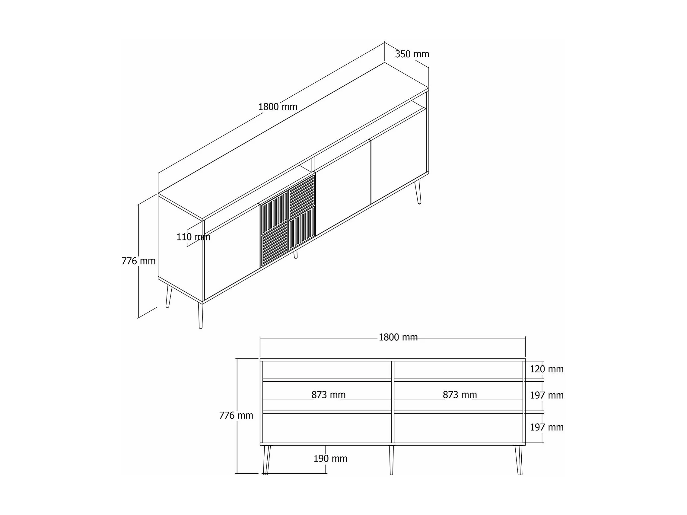 Dressoir – 180 cm x 81 cm x 35 cm – Wit – Melamine gecoate spaanplaat