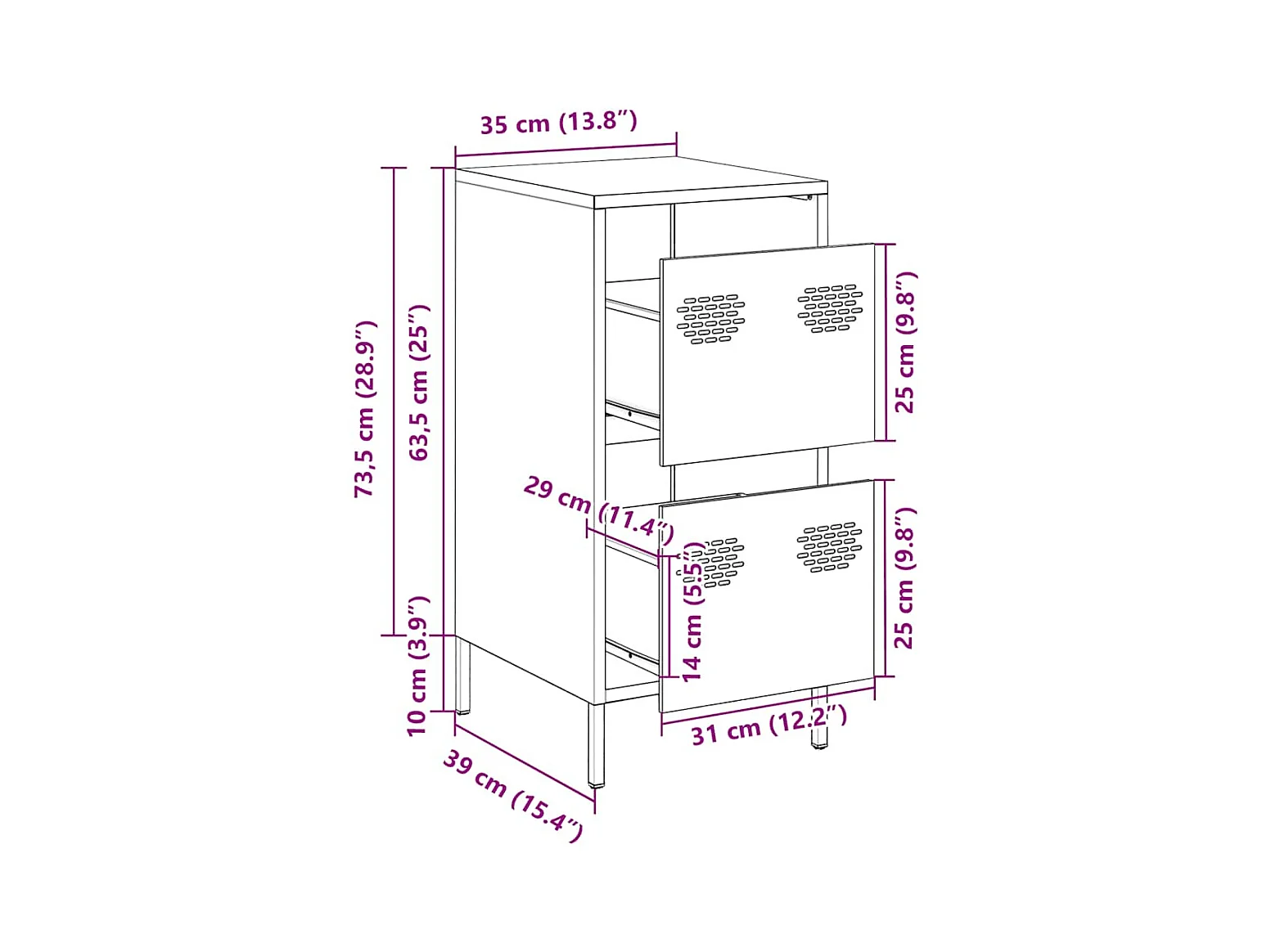Dressoir 35x39x73,5 cm koudgewalst staal olijfgroen