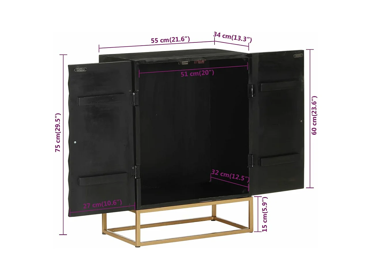 Dressoir 55x34x75 cm massief mangohout en ijzer zwart